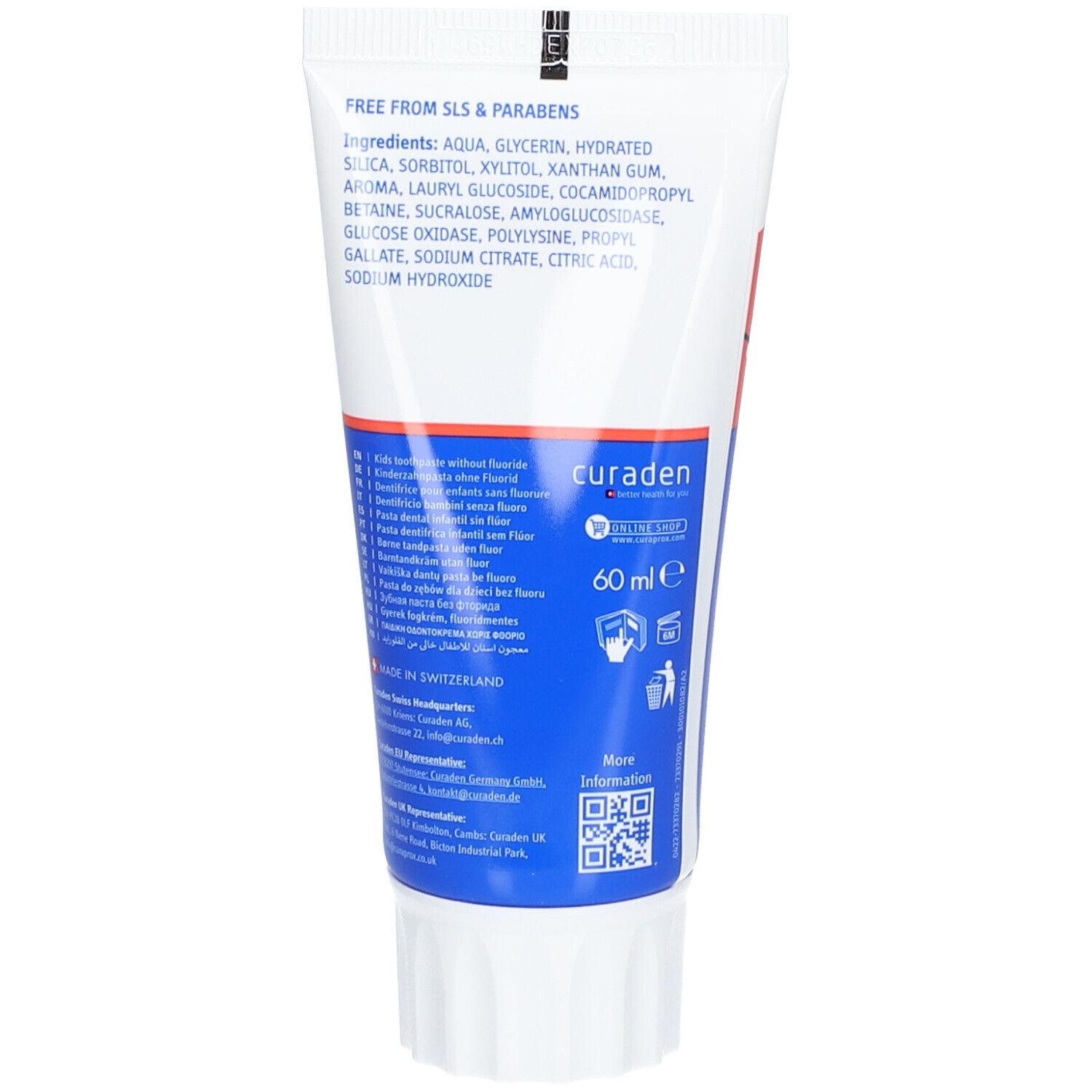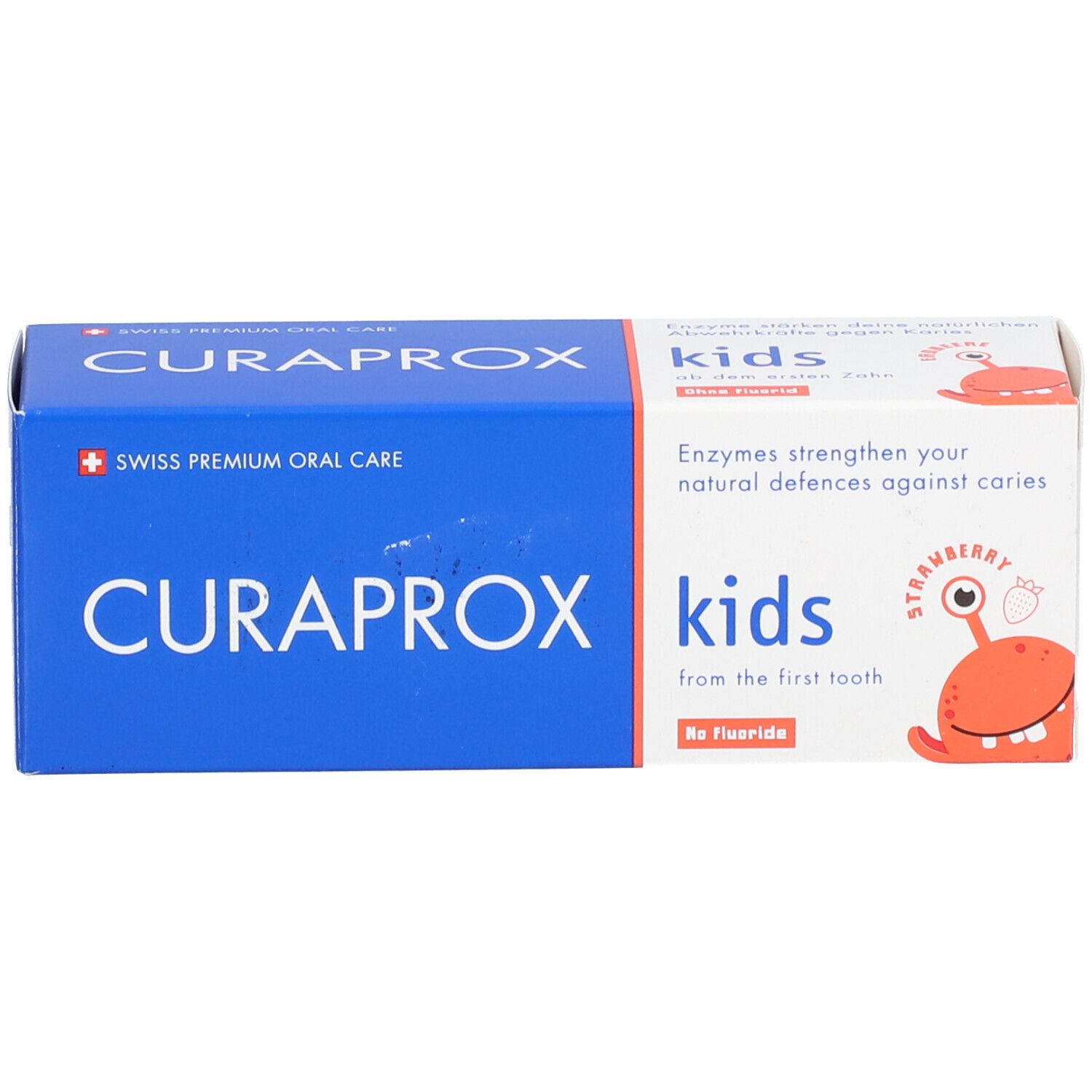 CURAPROX Kids Zahnpasta mit Erdbeergeschmack ab dem ersten Zahn ohne Fluorid
