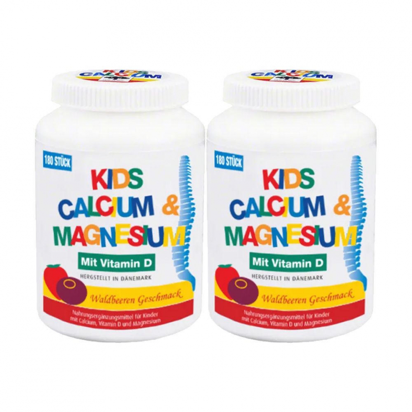 Детские жевательные таблетки с кальцием, магнием и витамином D для поддержки развития костей и зубов, укрепления иммунной системы у детей от 3 до 10 лет. С вкусом лесных ягод, 180 таблеток в упаковке.