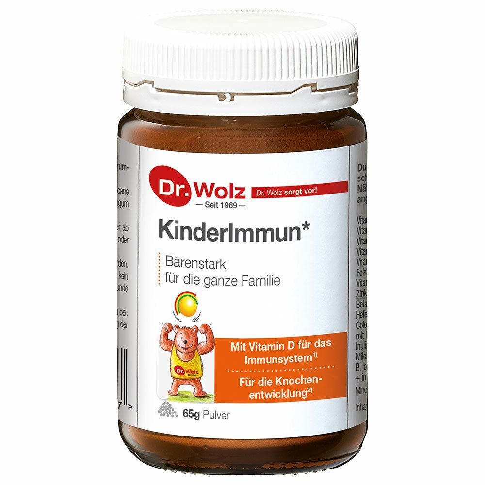 Детский иммунный комплекс KinderImmun Dr. Wolz - пищевая добавка для укрепления иммунитета у детей. Содержит витамины, минералы, пробиотики и натуральные компоненты для поддержки иммунной системы и здорового роста костей у детей.
