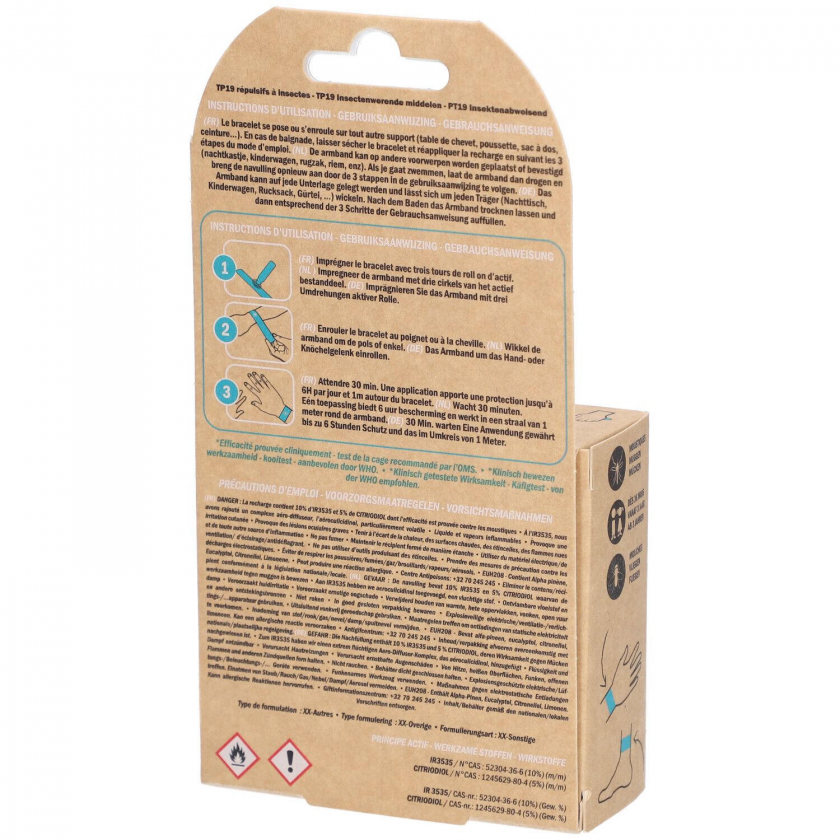 Способ применения: Надеть браслет на запястье, нанести 12 капель на ремешок, обеспечивает защиту на 6 часов