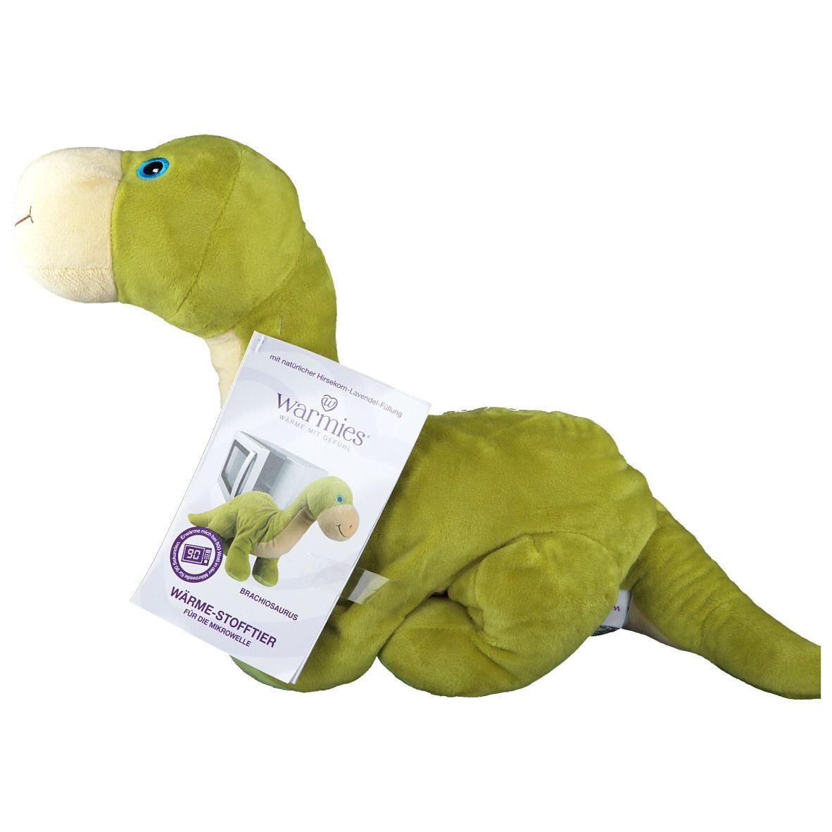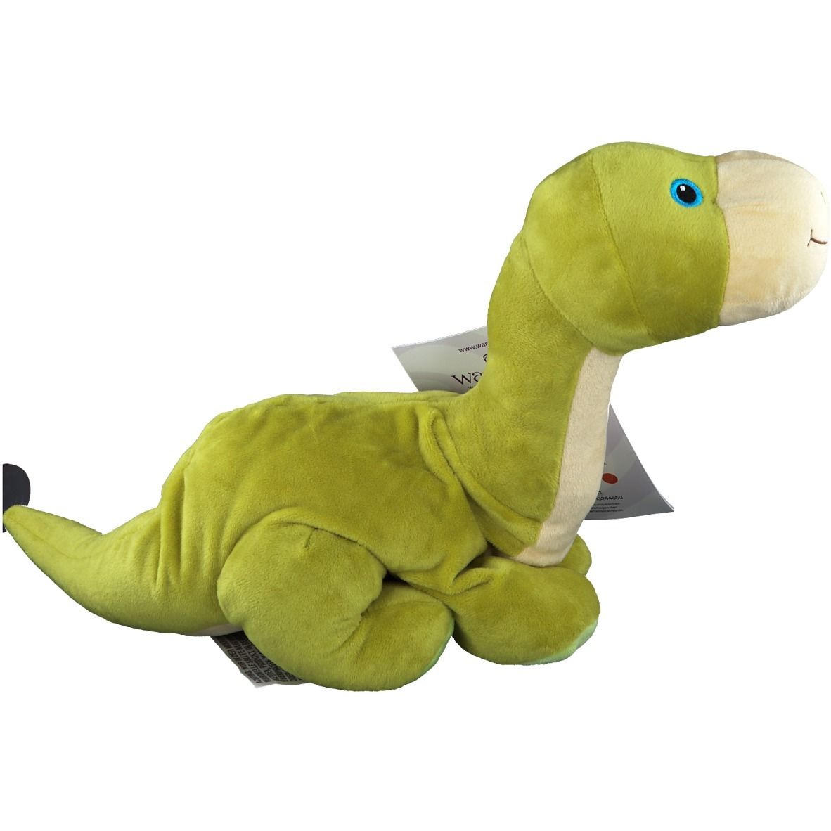 Теплая игрушка-динозавр Brachiosaurus от Warmies с лавандовым ароматом. Длина 30 см, вес 780 г. Можно нагревать в микроволновке или духовке для согревания, охлаждать в холодильнике или морозилке. Помогает детям успокоиться и уснуть.