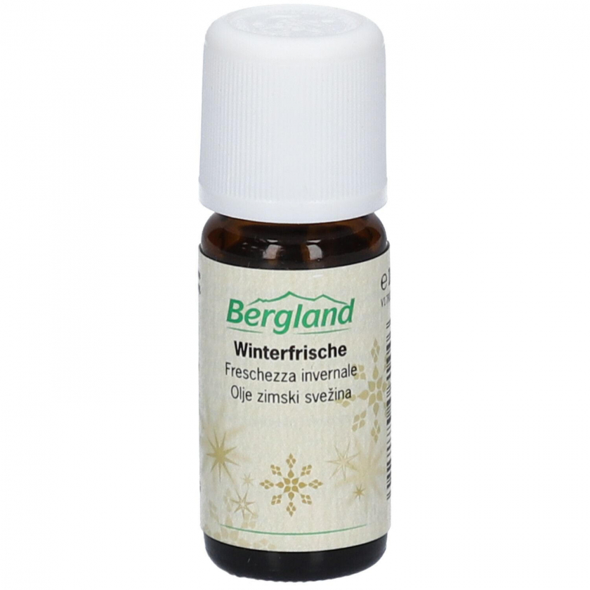 Ароматическое масло Bergland Winterfrische с зимней смесью имбиря, лимона и розмарина для создания свежей и живой атмосферы в помещении. Подходит для использования в аромалампах и на ароматических камнях, обладает бодрящим и освежающим эффектом.