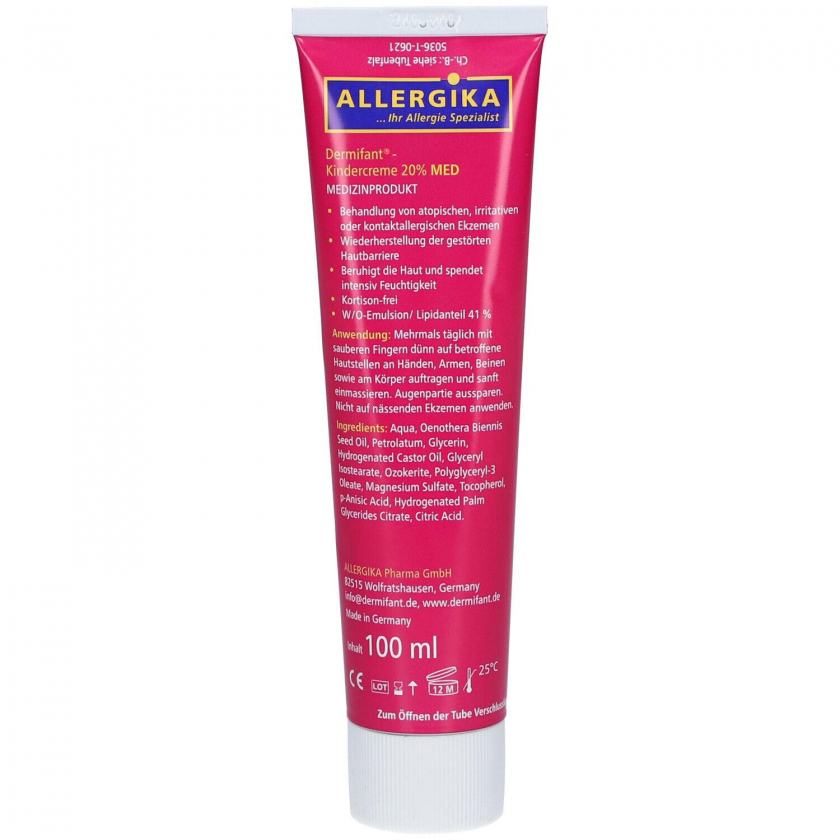 Кортизон-бесплатный крем для детей Dermifant® с 20% маслом энотеры для лечения сухих экзем у младенцев и детей. Восстанавливает кожный барьер, уменьшает зуд, покраснения, шелушение и сухость кожи. Клинически протестирован, не содержит аллергенов, произведен в Германии