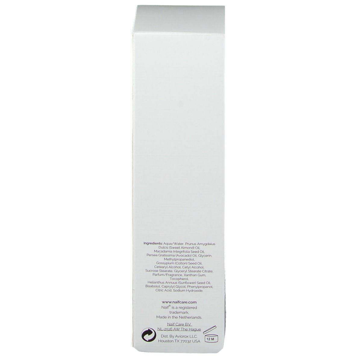 Состав: Вода, масло сладкого миндаля, масло семян макадамии, масло авокадо, глицерин, метилпропандиол, хлопковое масло, цетиловый спирт, цетеариловый спирт, глицерилстеарат цитрат, парфюм, ксантановая камедь, сукроза лаурат, спирт, токоферол, подсолнечное масло, бисаболол, каприлил гликоль, фенилпропанол, лимонная кислота, гидроксид натрия