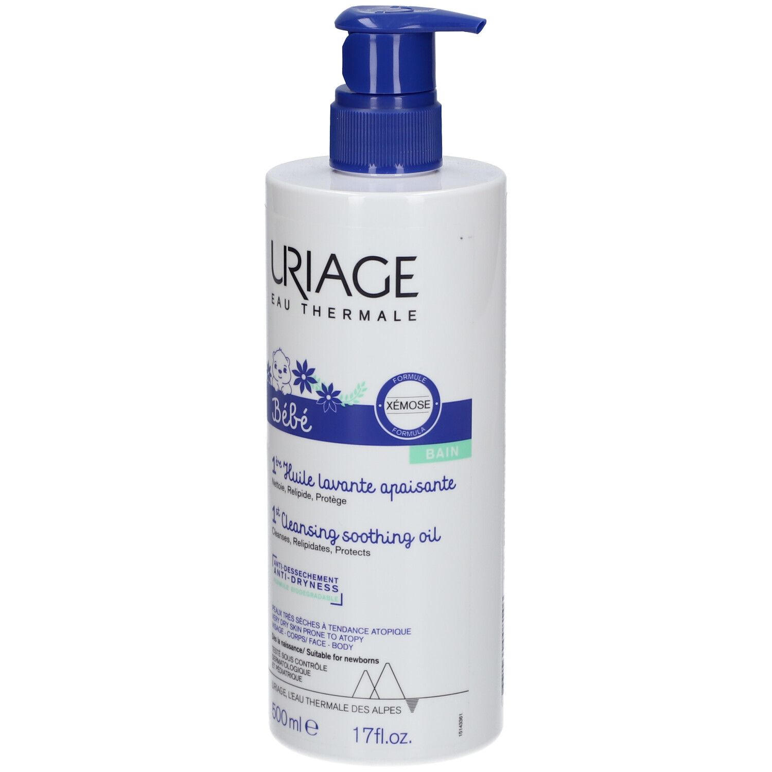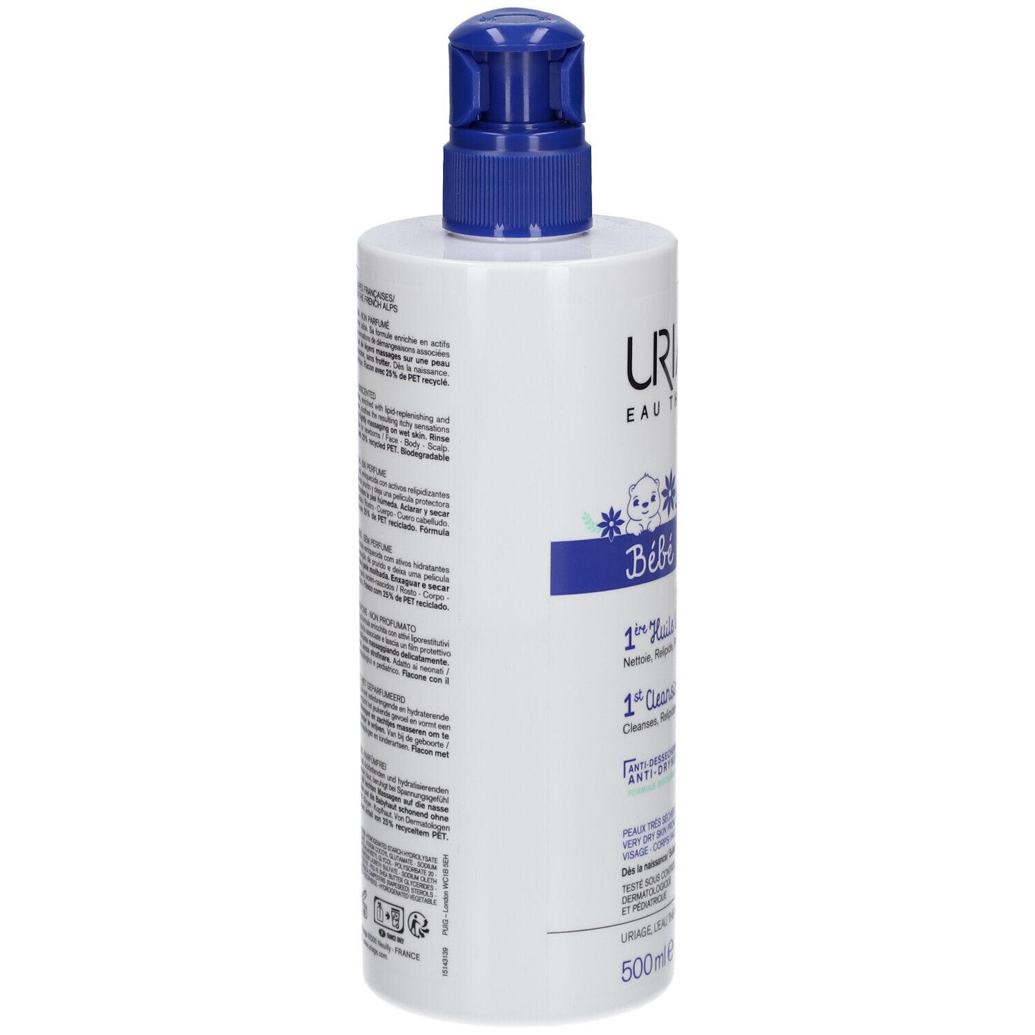 Успокаивающее очищающее масло URIAGE Baby Xemose для детей с очень сухой, склонной к атопии кожей. Без мыла и парфюма, содержит увлажняющие и восстанавливающие компоненты, защищает от сухости, снимает зуд и оставляет защитную пленку на коже.