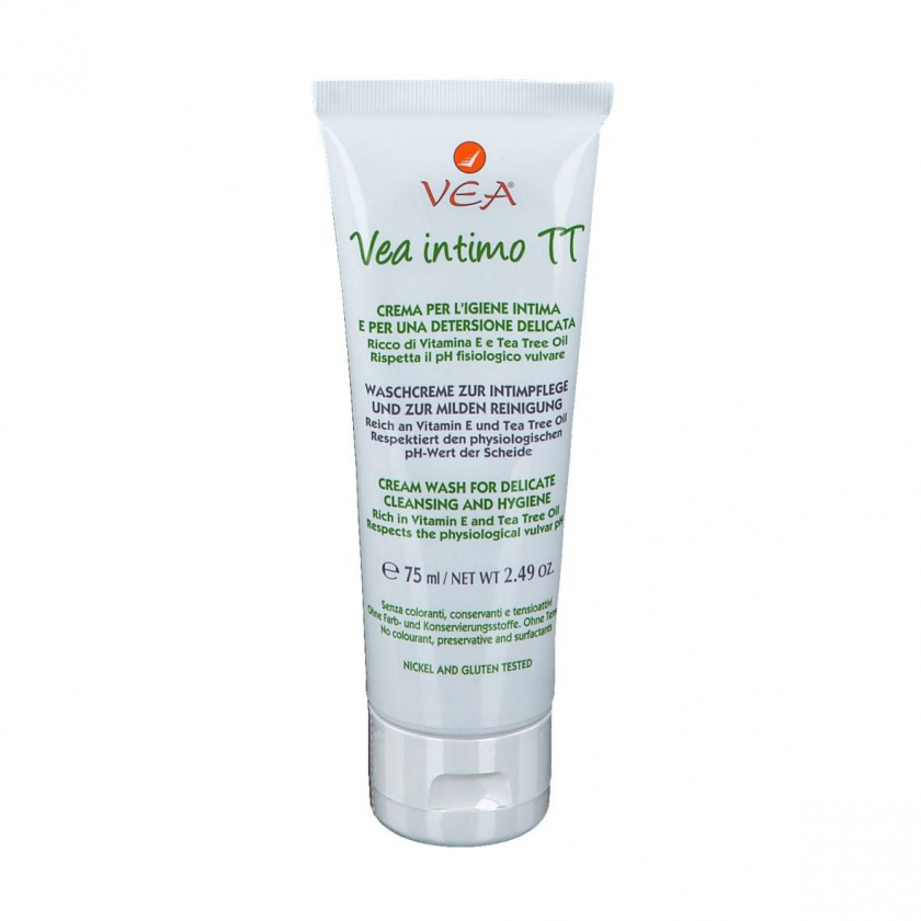 VEA intimo TT Waschcreme - мягкая очищающая крем-пенка для интимной гигиены с витамином E и маслом чайного дерева. Увлажняет, снимает зуд и покраснения, защищает кожу, не нарушает естественный pH-баланс. Подходит для ежедневного использования, не содержит красителей и агрессивных моющих компонентов.