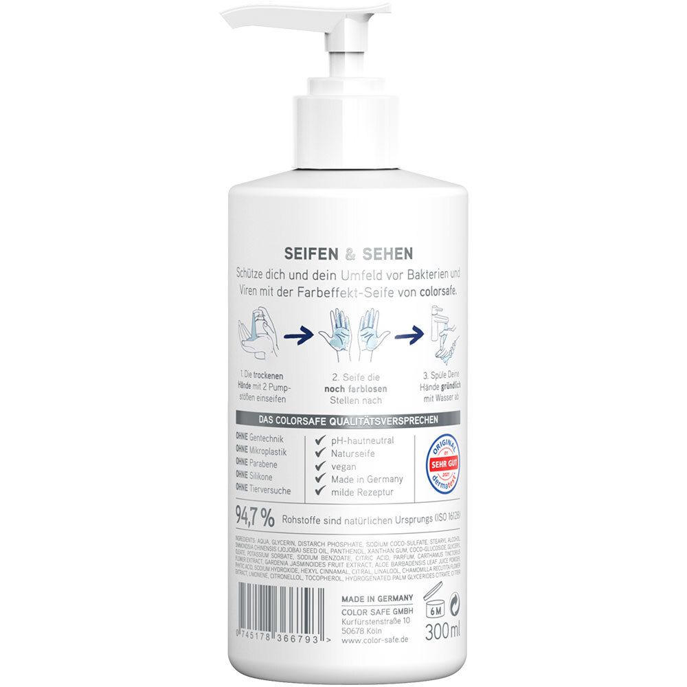 Инновационное мыло с синим цветовым эффектом для визуального контроля качества мытья рук. Позволяет видеть, какие участки рук уже намылены, обеспечивая тщательную гигиену. Подходит для взрослых и детей, имеет pH-нейтральную формулу, дерматологически протестировано, содержит 94,7% натуральных ингредиентов.