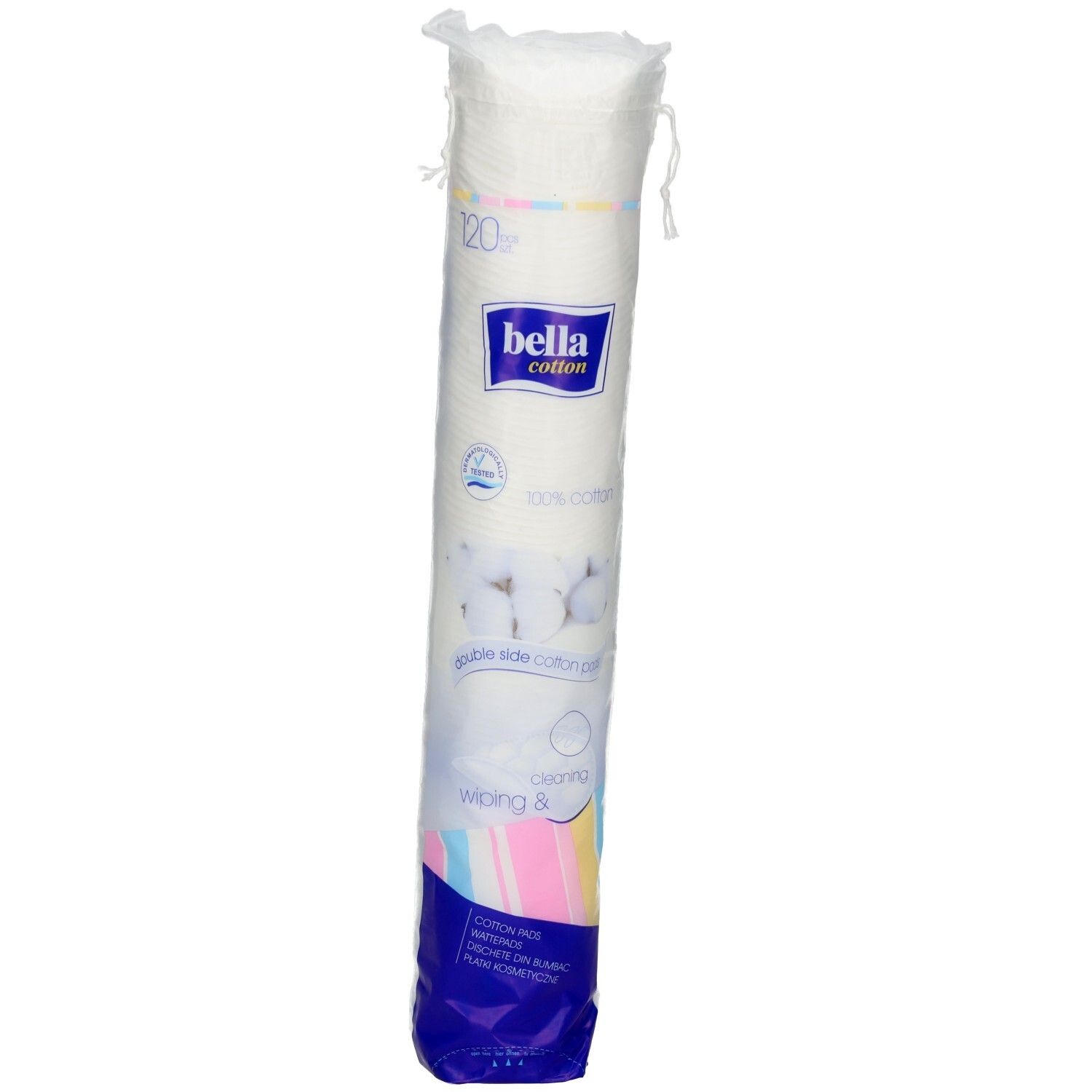 BELLA Duo-Wattepads rund - круглые ватные диски из хлопка, 120 штук. Особенно мягкие и нежные благодаря специальной технологии производства. Имеют особую текстуру для точного нанесения косметических средств. Подходят для снятия макияжа, нанесения тоников и уходовых продуктов.