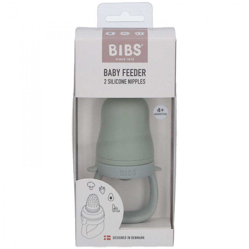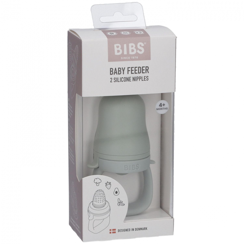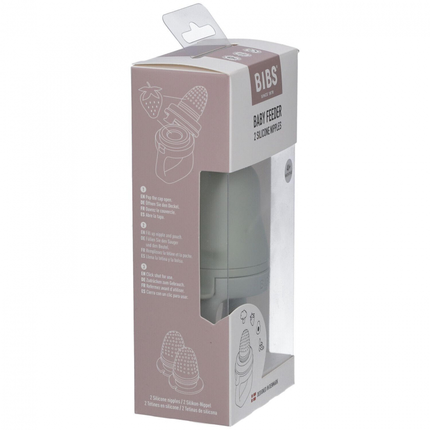 BIBS Baby-Feeder Salbei - детская кормушка-соска из мягкого силикона для безопасного введения прикорма. Позволяет давать грудное молоко, детское питание, фрукты и овощи. Имеет эргономичную ручку для маленьких ручек, массажные ребра для десен и защиту от протекания. Безопасный материал, можно мыть в посудомоечной машине.