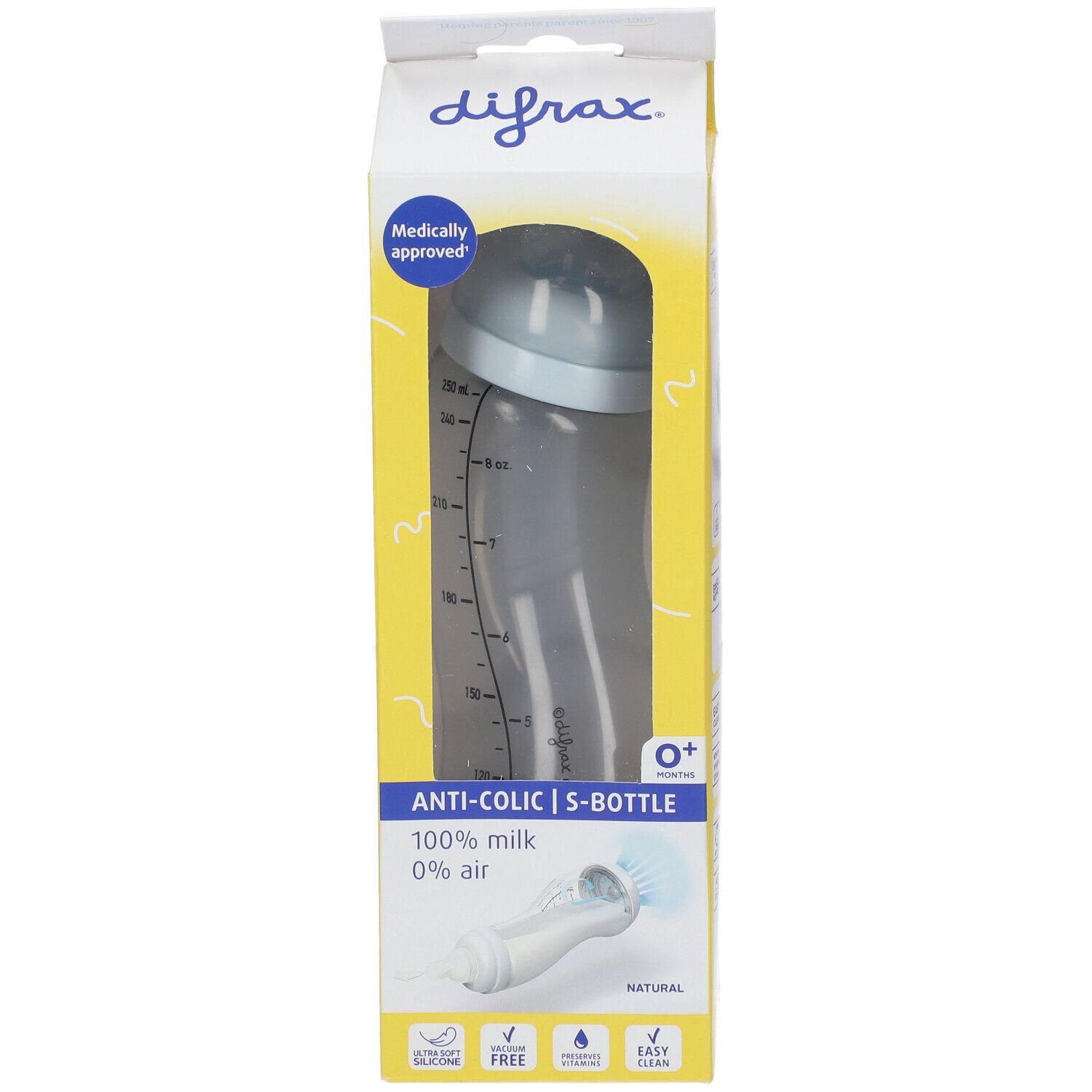 difrax® Babyflasche S Natural 0+ Monate 250 ml