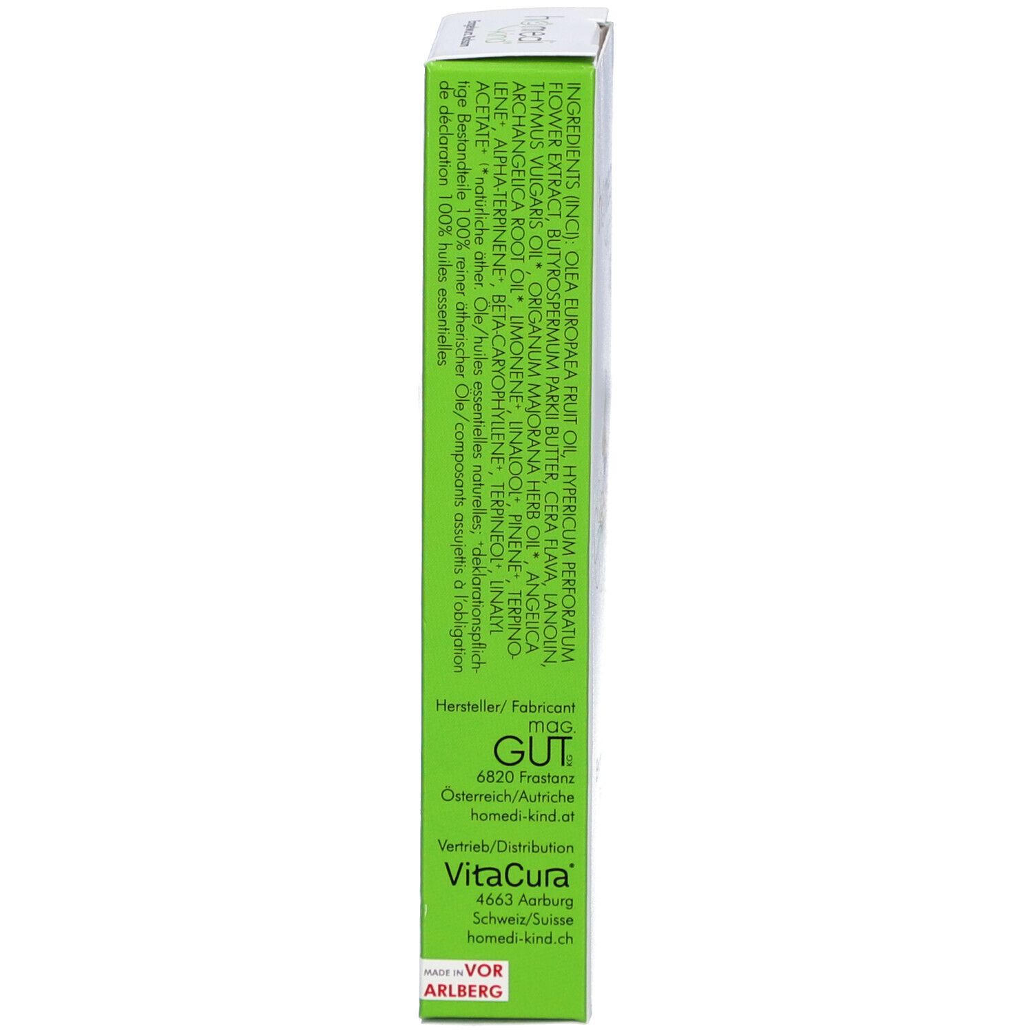 Состав: Масло зверобоя, масло ши (Butyrospermum parkii), пчелиный воск, ланолин, масло тимьяна, масло майорана, масло дягиля, линалоол, лимонен