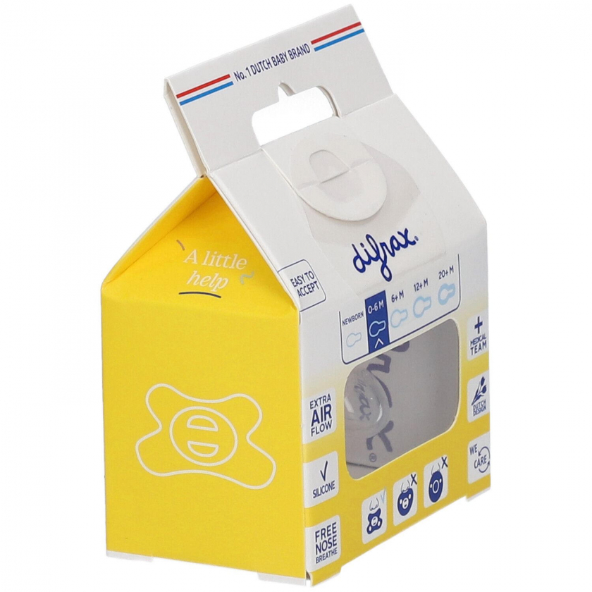 Силиконовая соска-пустышка difrax Natural для детей от 0 до 6 месяцев. Симметричная форма, разработана совместно с медиками, обеспечивает свободное дыхание через нос и предотвращает раздражение кожи благодаря отверстиям в щитке