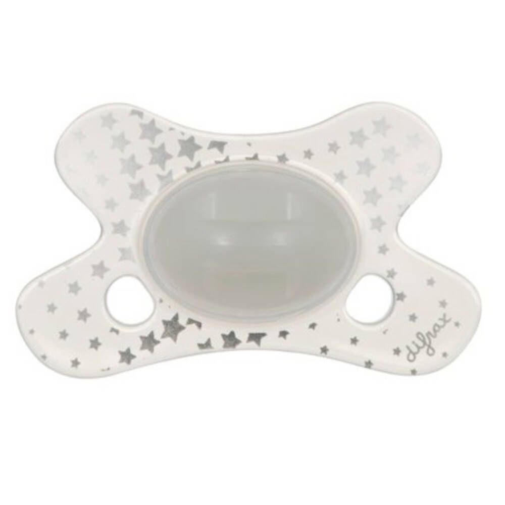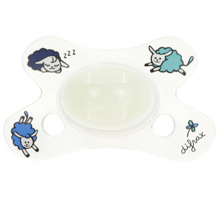 Соска-пустышка Difrax Glow in the Dark для детей 0-6 месяцев с люминесцентным кольцом, которое светится в темноте. Симметричная форма для легкого распознавания, специально разработанный размер для младенцев, предотвращает раздражение кожи благодаря оптимальной вентиляции.