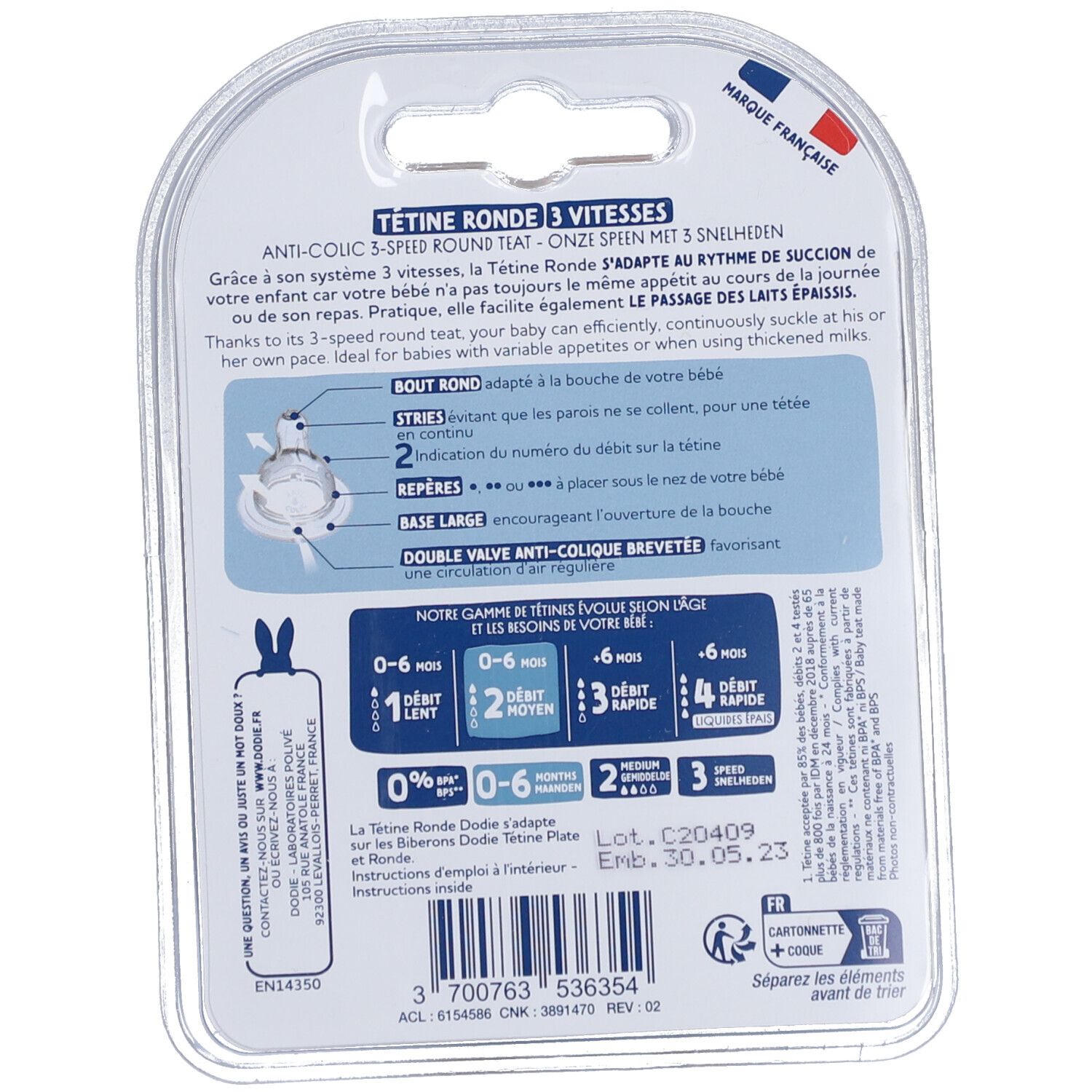 Антиколиковая соска dodie Initiation+ для бутылочек, предназначена для новорожденных 0-6 месяцев. Имеет мягкую текстуру, медленный поток, 3 скорости, антирегургитационные свойства, широкую круглую форму, имитирующую грудь, и вентиляционную систему. В комплекте 2 соски.