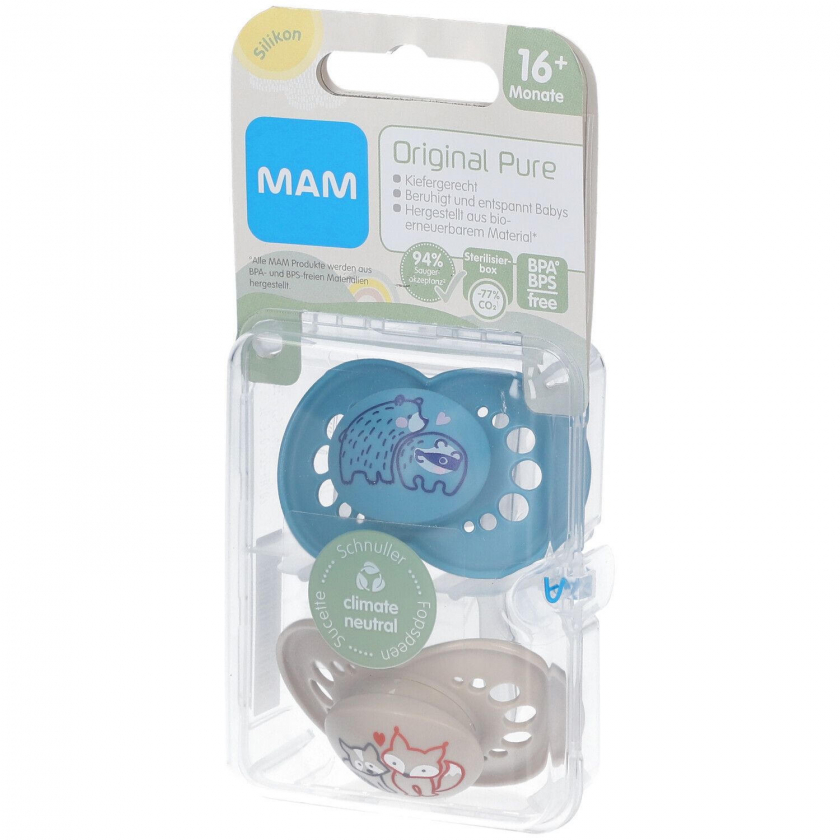 MAM Original Pure Silikonschnuller 16+ Monate, Bär/ Fuchs