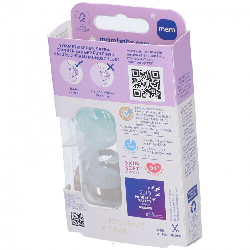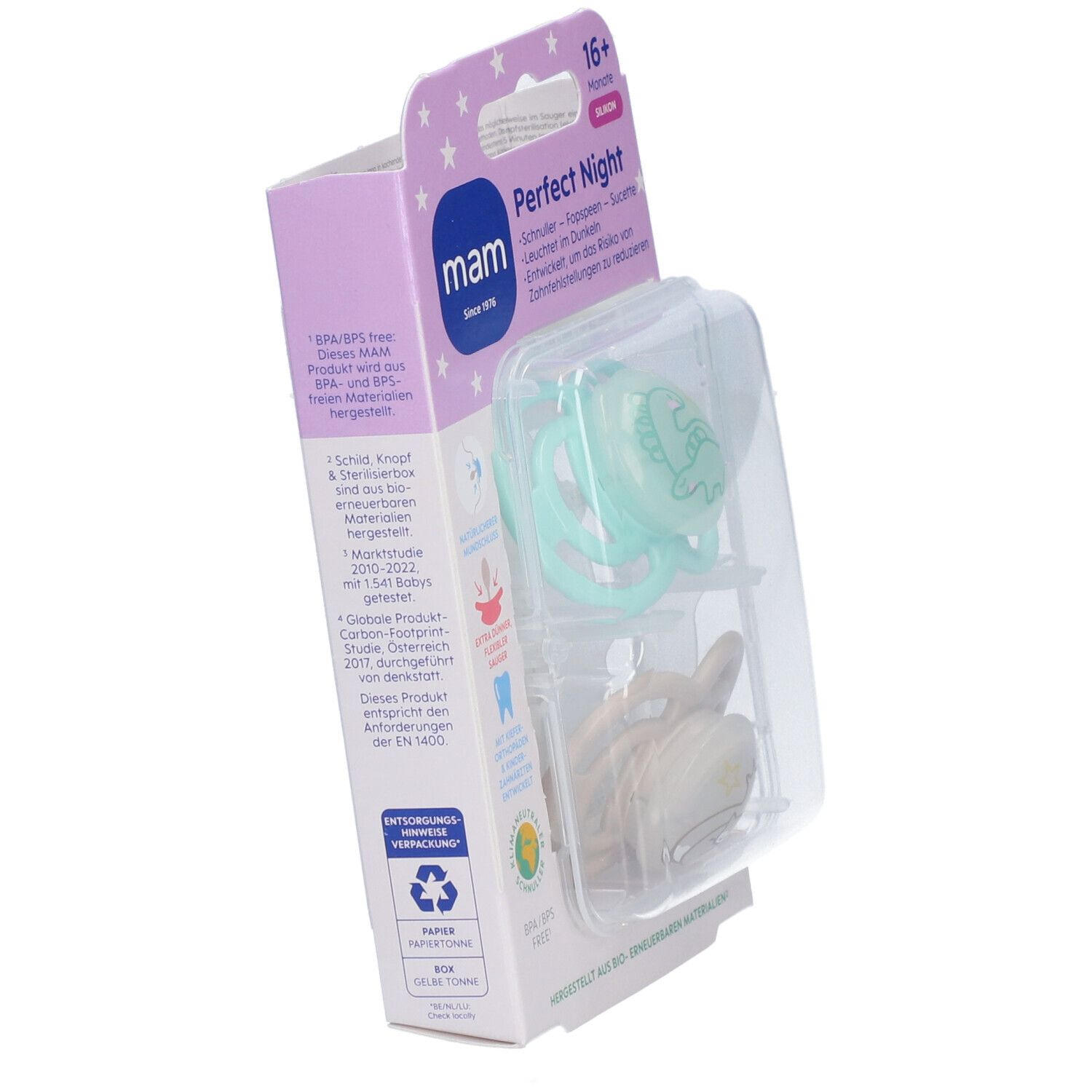 MAM Perfect Night Silikonschnuller 16+ Monate, mint/creme