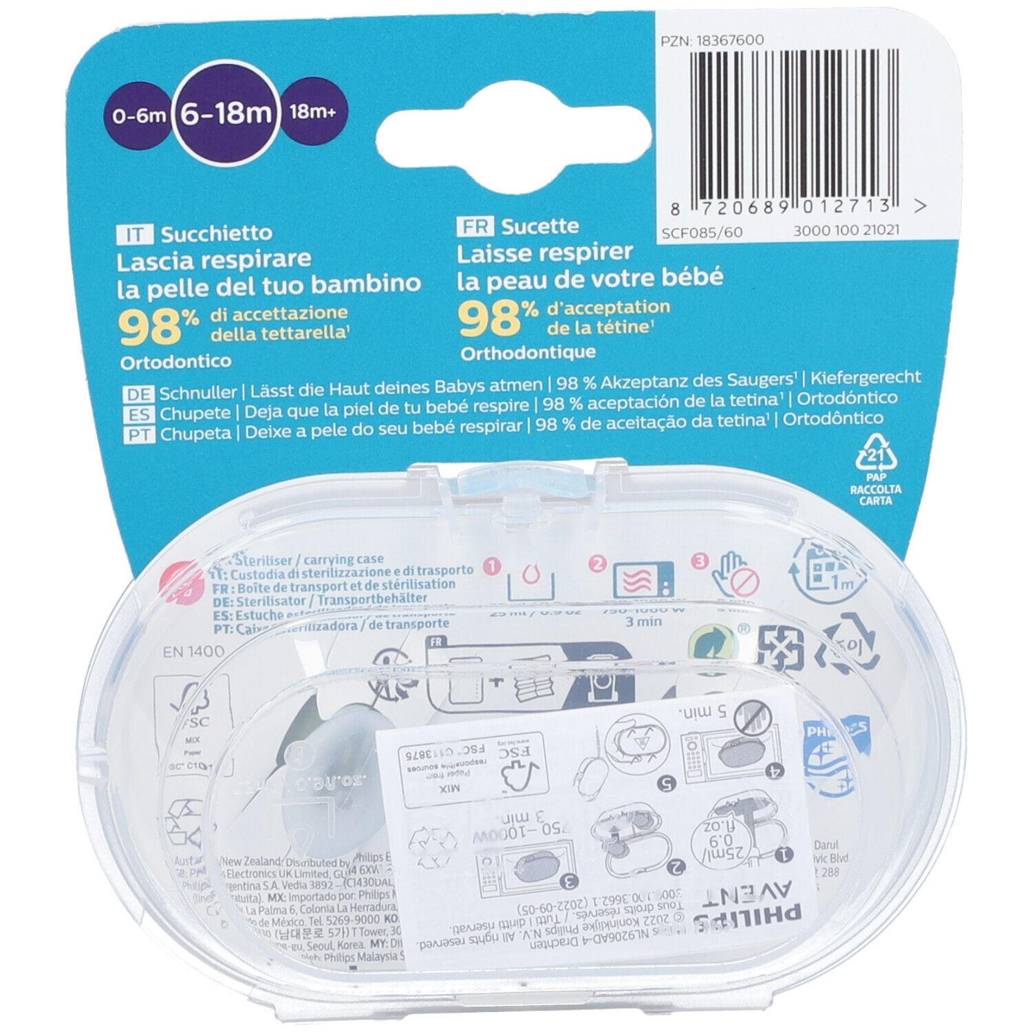 PHILIPS Avent Ultra Air Schnuller 6-18 Monate, grün/grau