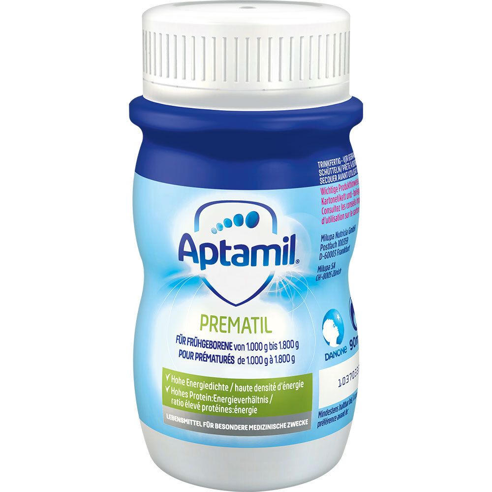 Aptamil® Prematil - специализированная готовая к употреблению смесь для недоношенных детей весом от 1000 до 1800 грамм. Содержит высокую энергетическую плотность, оптимальное соотношение белка и энергии, эссенциальные питательные вещества, LCP, олигосахариды и нуклеотиды. Разработана на основе 40-летних исследований для удовлетворения повышенных потребностей в питании недоношенных детей.