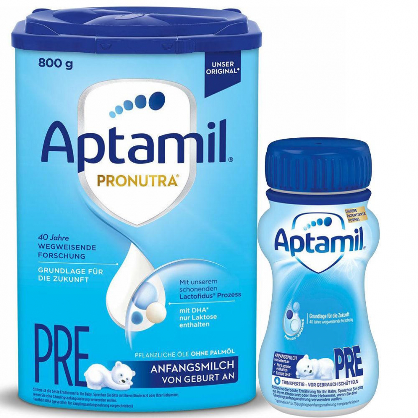 Детская молочная смесь Aptamil Pronutra Pre и Pronutra-ADVANCE PRE для новорожденных с рождения. Специализированное питание с пребиотиками (GOS/FOS), LCP жирными кислотами, витаминами и минералами. Подходит как основное питание или докорм. Производство Германия.