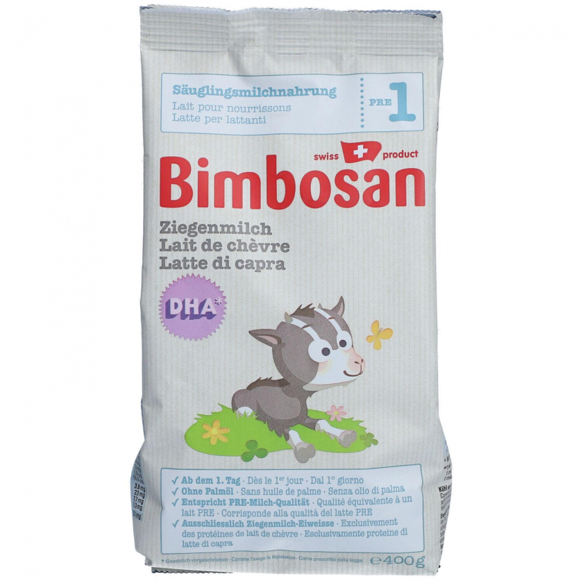 Bimbosan Ziegenmilch Säuglingsmilchnahrung PRE 1 - высококачественная начальная молочная смесь на основе козьего молока для новорожденных с рождения. Содержит ДГК для здорового развития, без пальмового масла, способствует мягкому пищеварению. Подходит для детей с первых дней жизни.