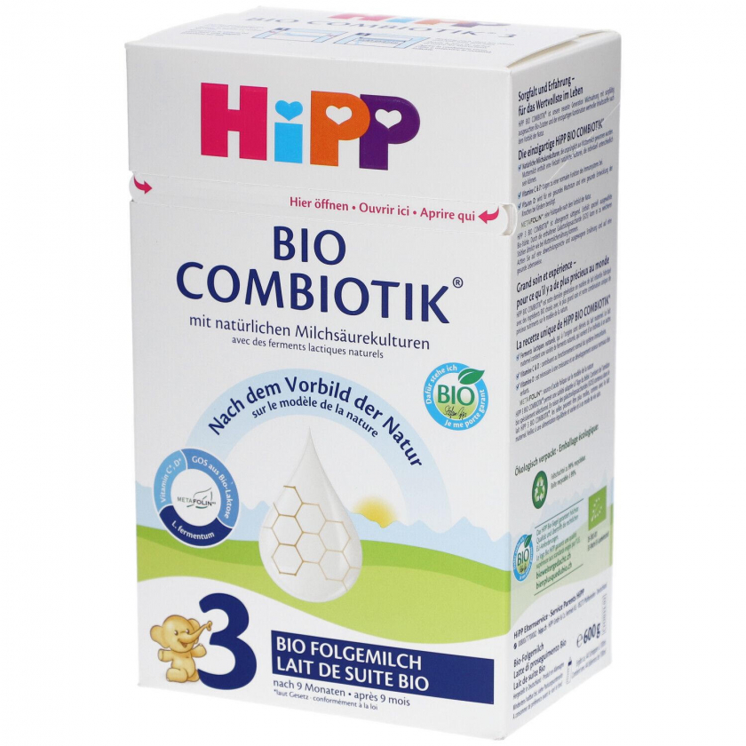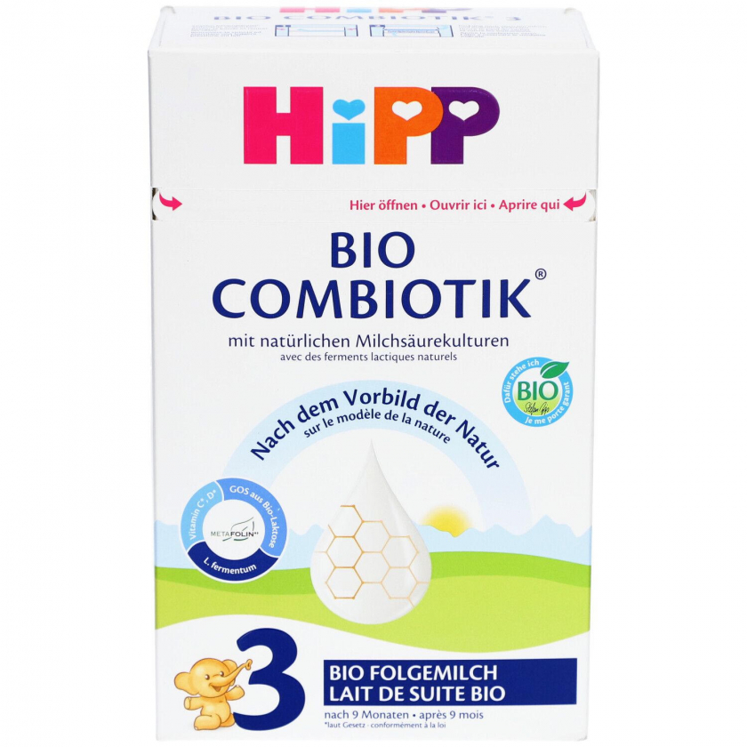 Органическая последующая молочная смесь HiPP Bio Combiotik 3 для детей от 9 месяцев с натуральными молочнокислыми культурами и GOS. Содержит важные витамины C, D, E, поддерживает иммунитет и сбалансированное питание. Без пальмового масла, на основе тщательно отобранного органического молока.