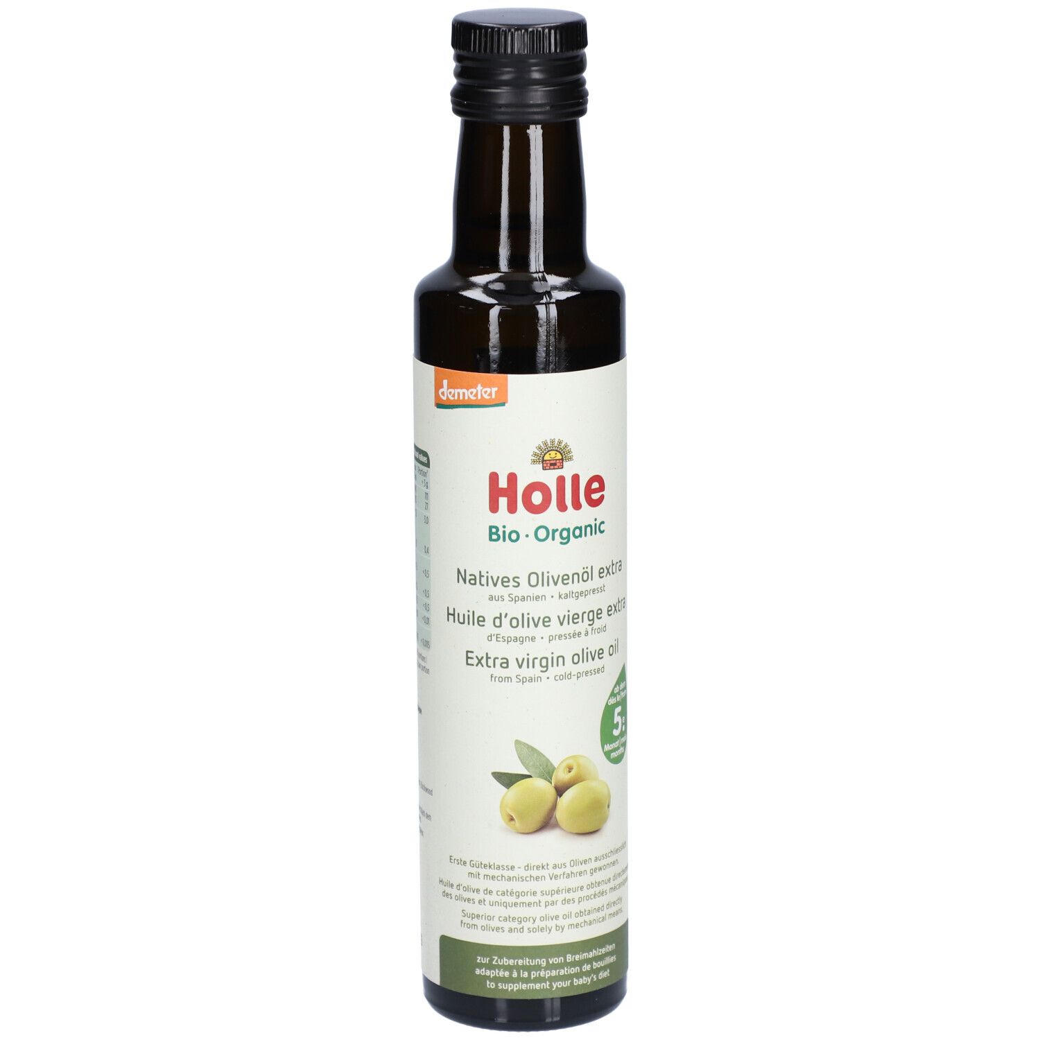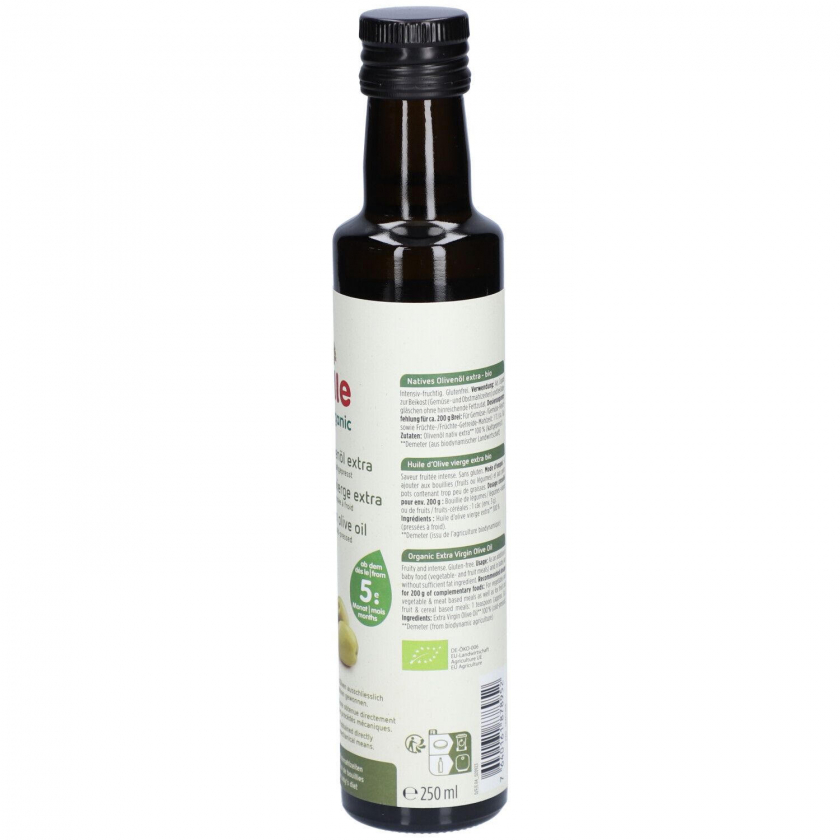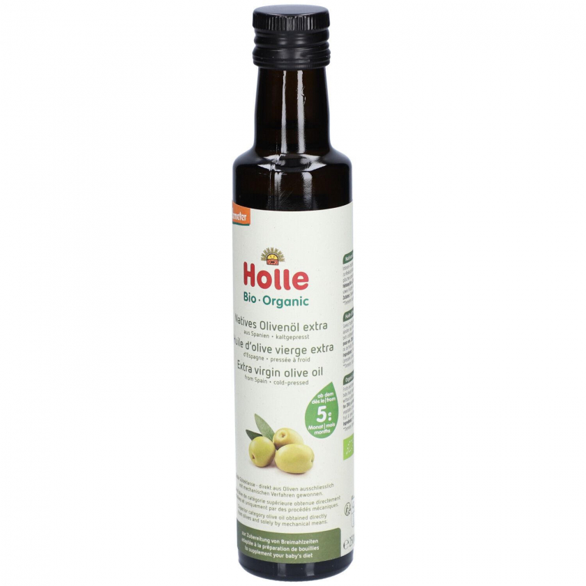 HOLLE Baby Beikost Olivenöl - органическое оливковое масло холодного отжима для добавления в детское питание. Используется как добавка к овощным и фруктовым пюре для младенцев, обеспечивает необходимые жиры. Произведено в Швейцарии по стандартам Demeter.