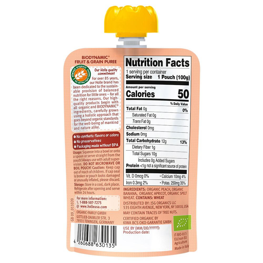Органическое фруктовое пюре Holle Bio Organic PANDA PEACH для детей от 8 месяцев. Изготовлено из натуральных ингредиентов Demeter-качества без добавления сахара и соли. Содержит персик, банан, абрикос и полбу. Идеально для перекуса и питания вне дома.