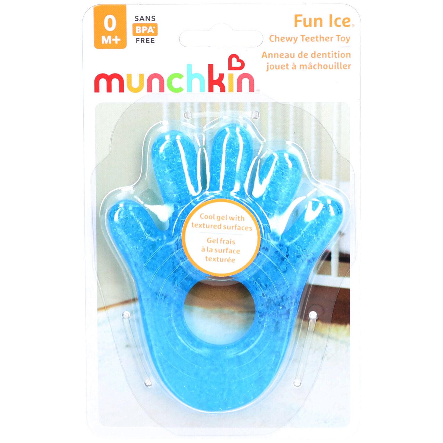 Охлаждающее жевательное кольцо Fun Ice от munchkin для облегчения боли при прорезывании зубов у младенцев. Имеет разнообразные текстуры для массажа десен, удобную форму для маленьких ручек, безопасный BPA-фри материал. Можно охлаждать в холодильнике для дополнительного успокаивающего эффекта.