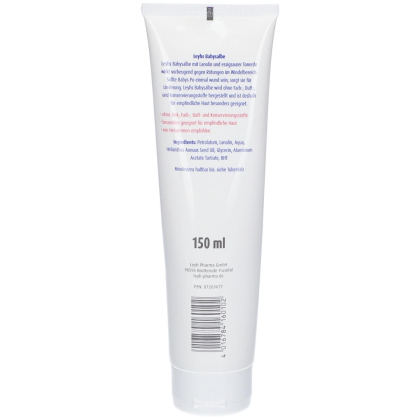 Детский крем Leyhs Babysalbe для ухода за кожей в области подгузника. Предотвращает опрелости, помогает при раздражениях и покраснениях. Без парфюма и консервантов, хорошо смывается с подгузников. Создан по рецептуре доктора Эрфурта.
