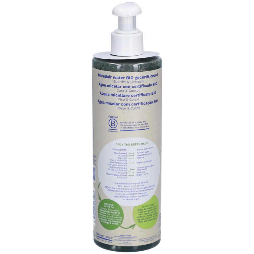 Органическое мицеллярное средство Mustela для мягкого очищения лица, тела и области подгузника у младенцев с рождения. Не требует смывания, подходит для всей семьи и для снятия макияжа. Без отдушек, веганская формула с 99% натуральных компонентов