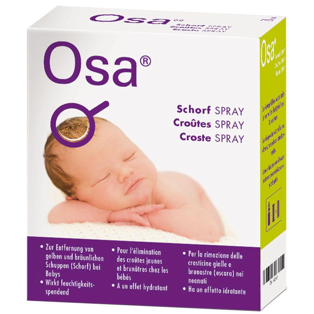 Osa® Schorf Spray - спрей для мягкого удаления молочных корочек (себорейного дерматита) у младенцев. Содержит натуральные масла и витамины для бережного ухода за чувствительной кожей ребенка. Подходит для применения на голове, лице и других участках тела. Эффективно справляется с желтыми и коричневатыми корочками, которые появляются у 50% новорожденных