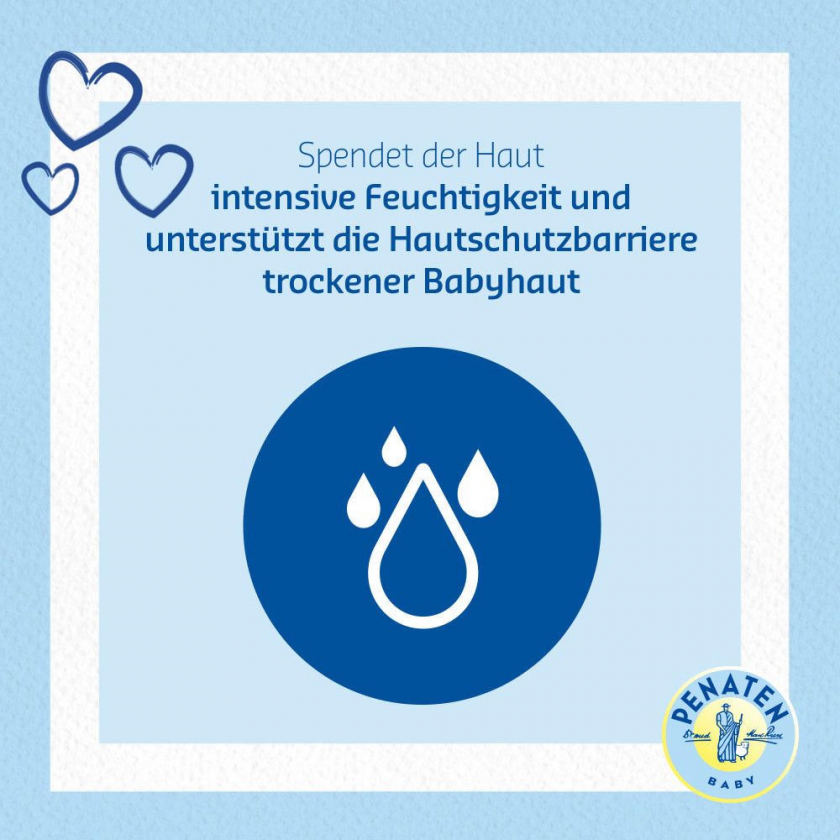Интенсивная увлажняющая молочко для ухода за сухой кожей младенцев. Обеспечивает 24-часовое увлажнение, содержит комплекс оливкового листа, минералов и витамина Е, поддерживает защитный барьер кожи. Дерматологически протестировано, подходит для чувствительной детской кожи.
