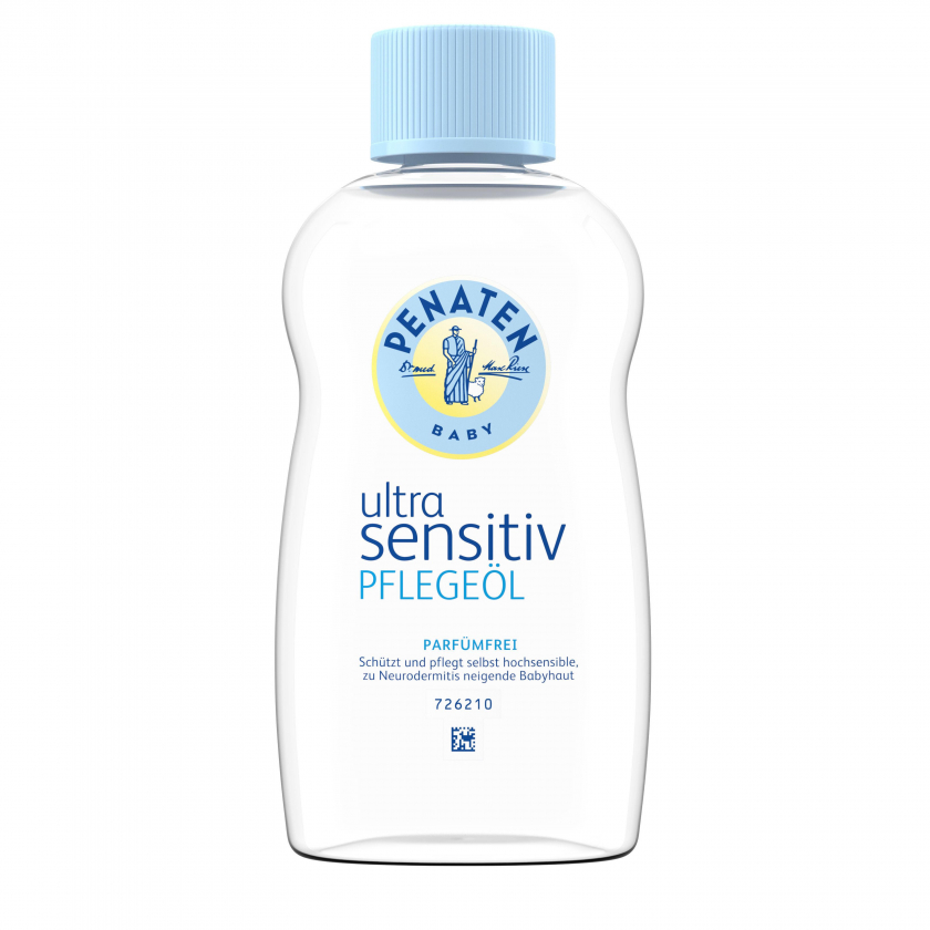 PENATEN® Ultra Sensitiv Pflegeöl - специальное масло для ухода за сверхчувствительной кожей новорожденных и младенцев, склонных к нейродермиту. Без отдушек и красителей, гипоаллергенное, подходит для детского массажа и очищения области под подгузником. Рекомендовано Немецким союзом аллергии и астмы (DAAB).