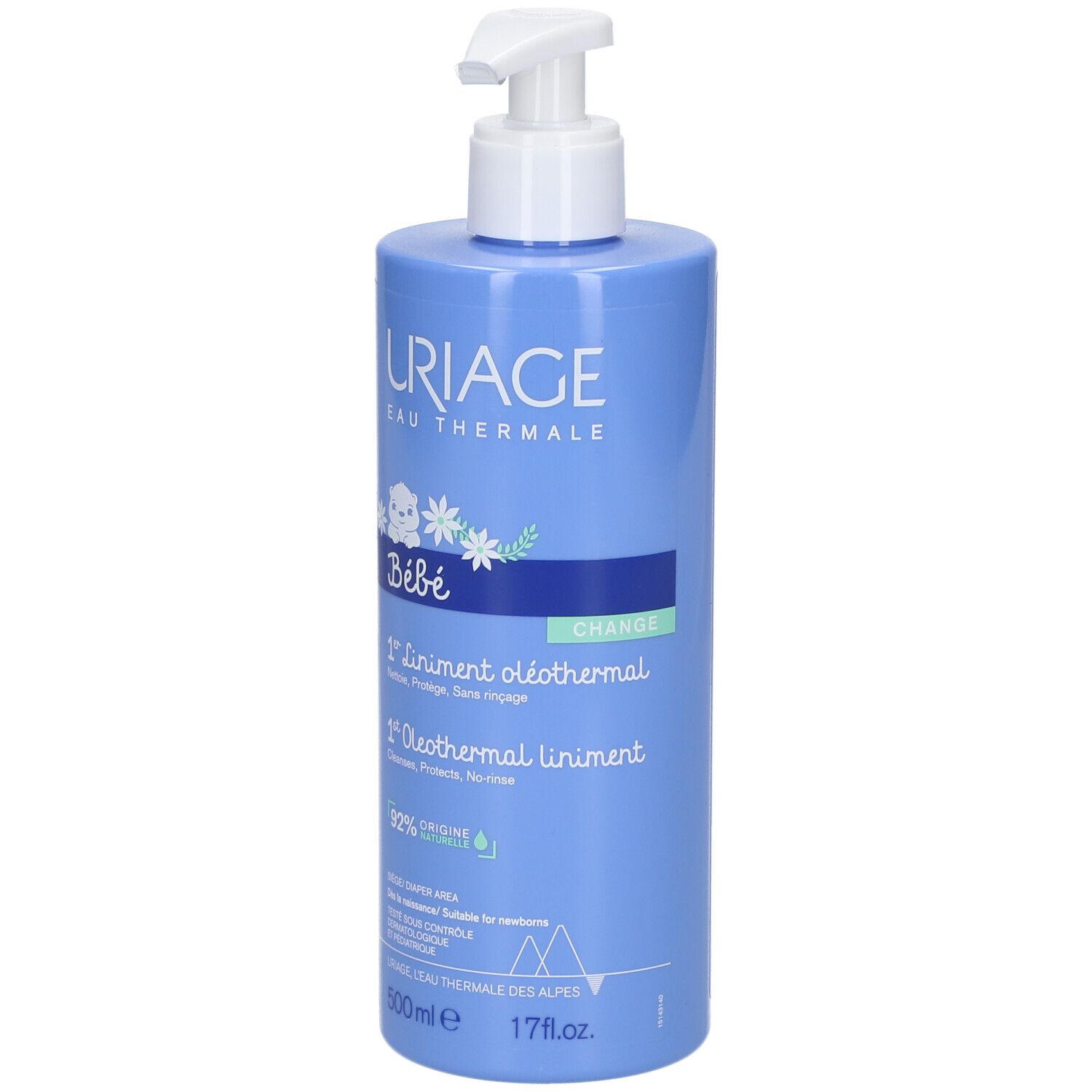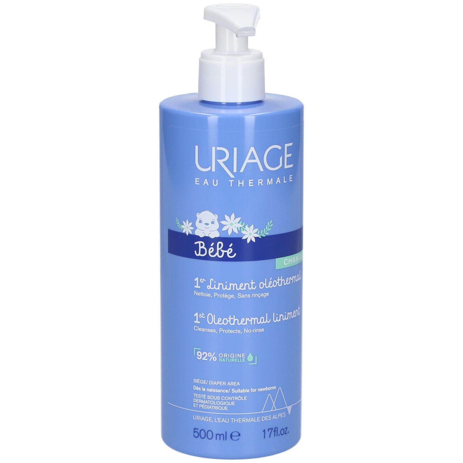 Защитное масло для ухода за кожей новорожденных Uriage Baby 1st Liniment Oleothermal. Очищает кожу, удаляет загрязнения, снимает покраснения и предотвращает раздражения. Объем 500 мл.