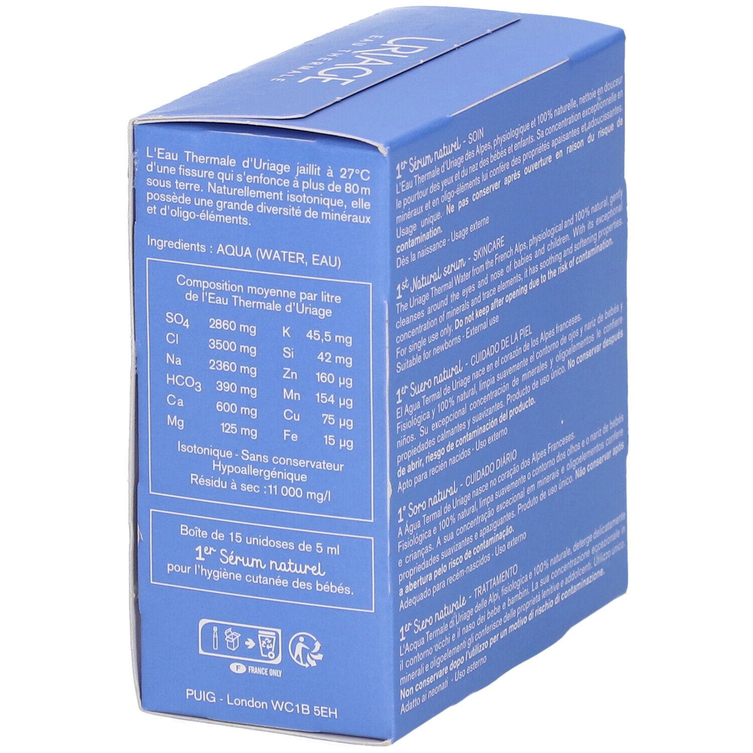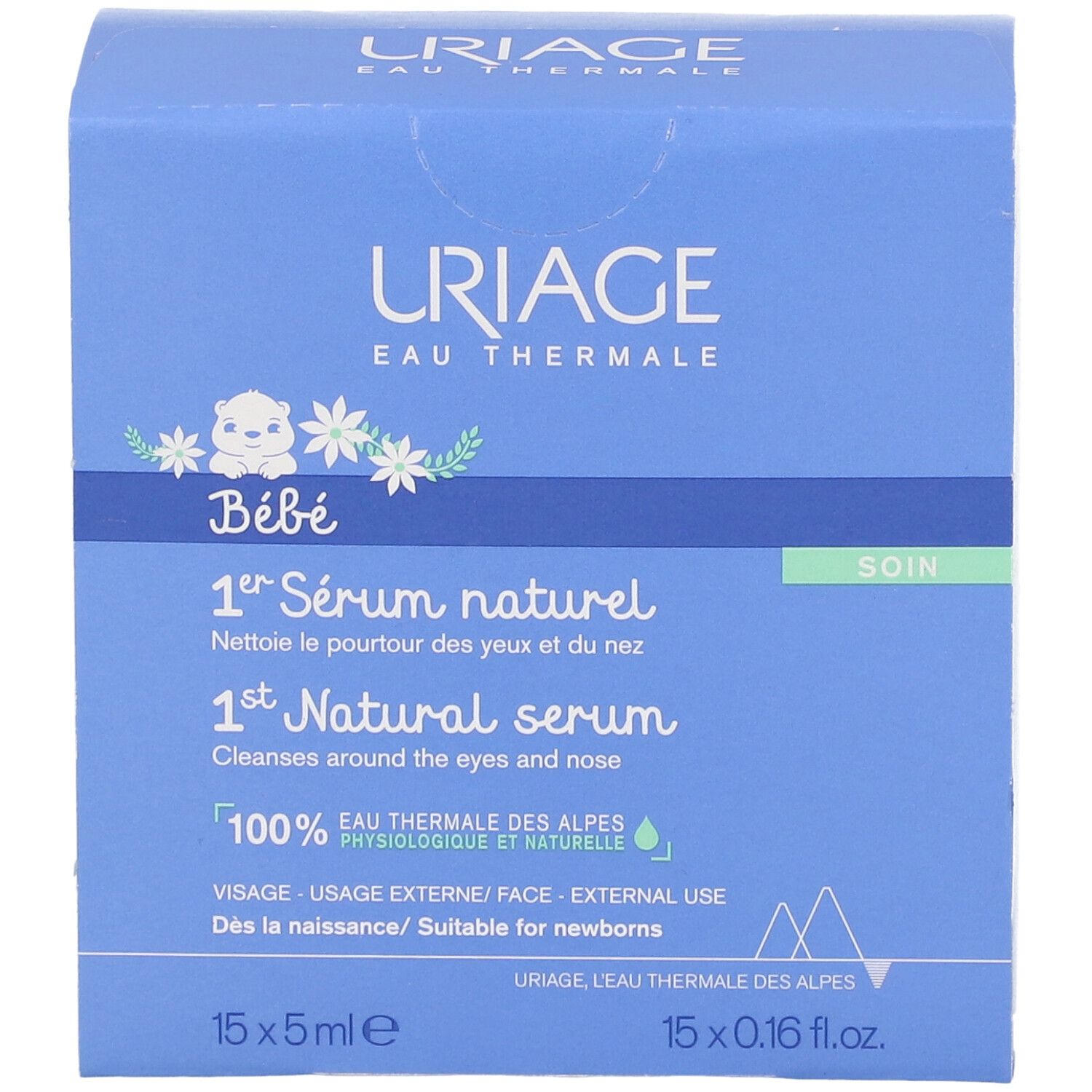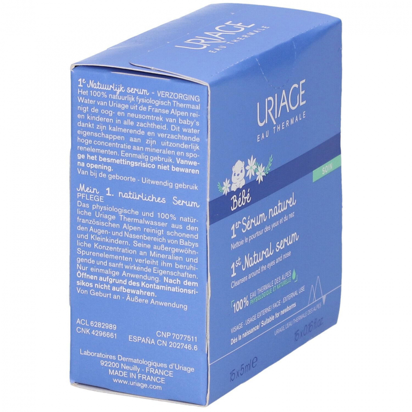URIAGE Baby 1st Natural Serum - натуральная термальная вода из французских Альп для бережного очищения глаз и носа у младенцев и детей. Обладает успокаивающими и смягчающими свойствами благодаря высокой концентрации минералов и микроэлементов. Подходит для всех типов кожи.