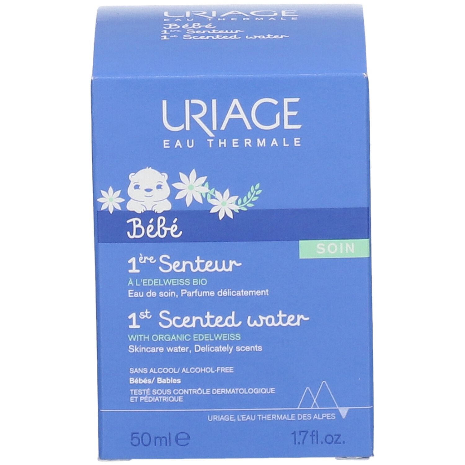 Душистая вода для ухода за кожей младенцев URIAGE Baby 1st Scented Water - нежное средство без алкоголя на основе термальной воды Uriage и экстракта эдельвейса. Подходит для ежедневного ухода за волосами и кожей головы ребенка.