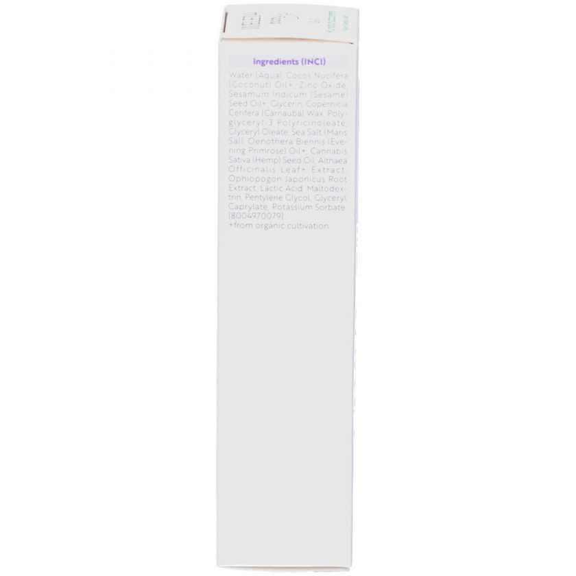 Состав: Вода (Aqua), масло кокоса, оксид цинка, масло семян кунжута, глицерин, воск карнауба, полиглицерил-3 полирицинолеат, глицерил олеат, морская соль, масло вечерней примулы, масло семян конопли, экстракт листьев алтея, экстракт корня офиопогона японского, молочная кислота, мальтодекстрин, пентиленгликоль, глицерил каприлат, сорбат калия