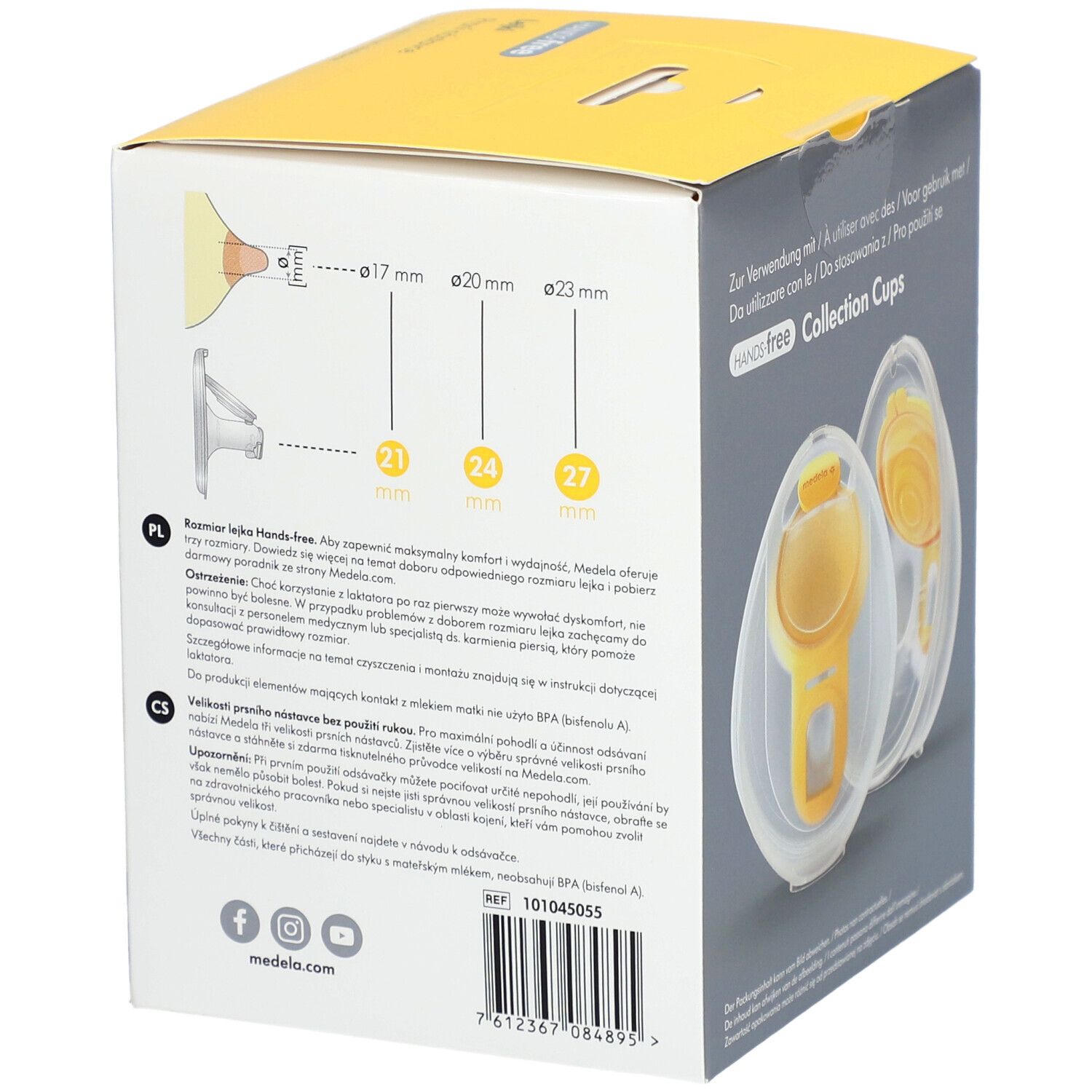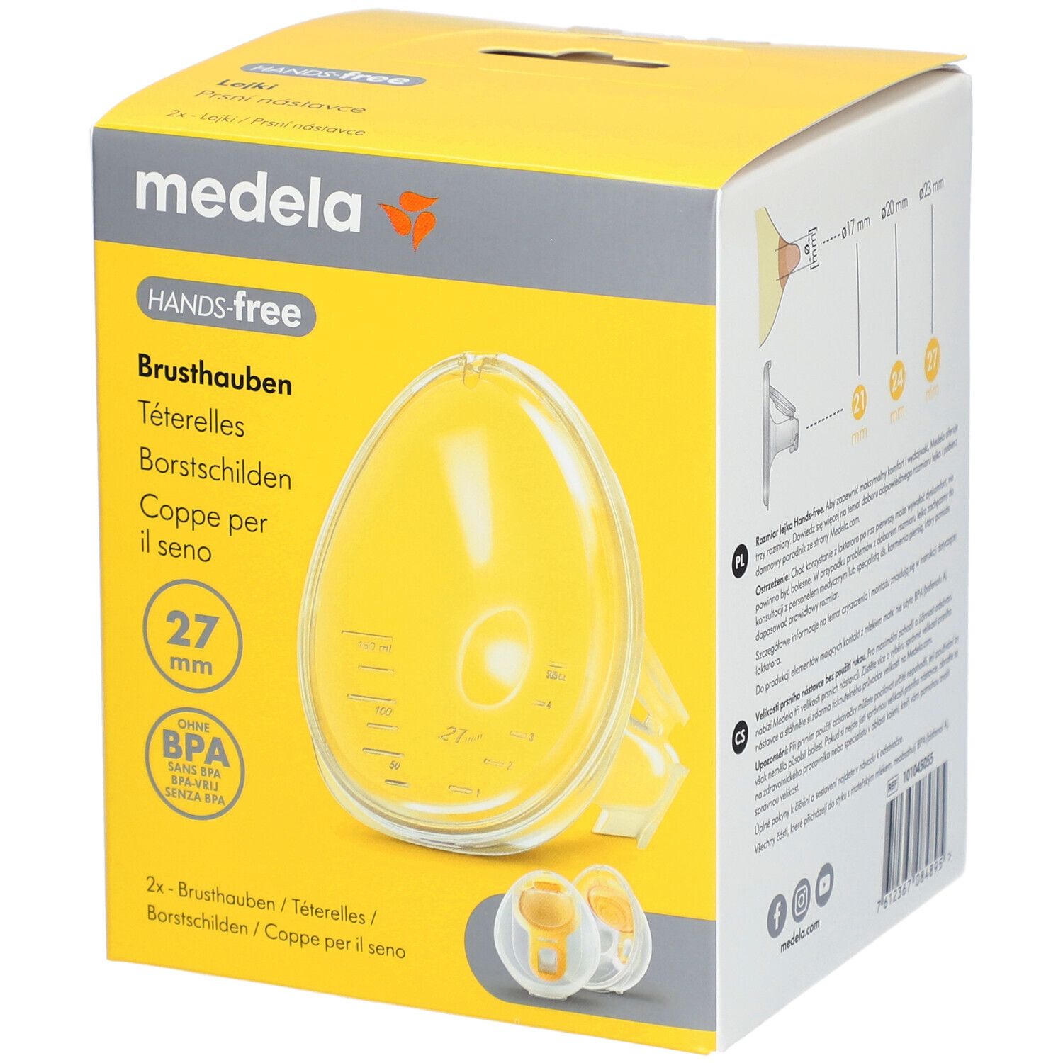Freestyle™ Hands-free Brusthauben - специальные насадки для молокоотсоса Medela Freestyle™ размером 27 мм. Обеспечивают комфортное и эффективное сцеживание благодаря углу раскрытия 105°, который снижает давление на ткань груди и максимизирует поток молока. Изготовлены из безопасного пищевого пластика без BPA, латекса и фталатов. В комплекте 2 насадки.
