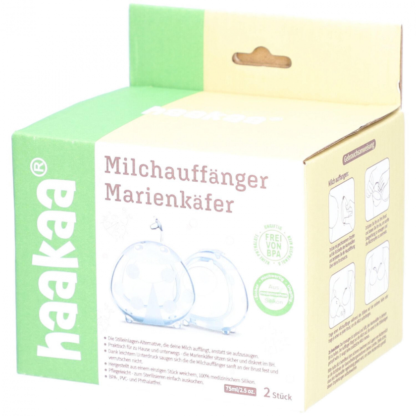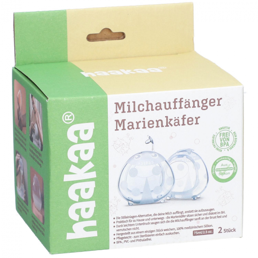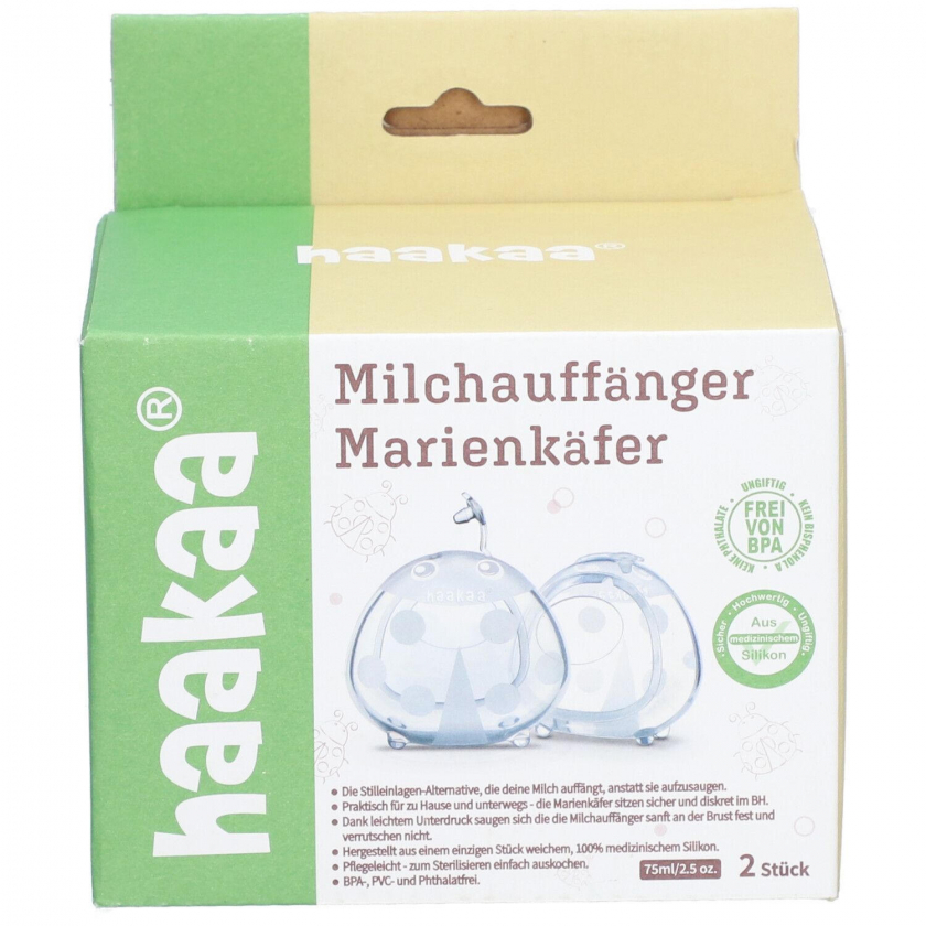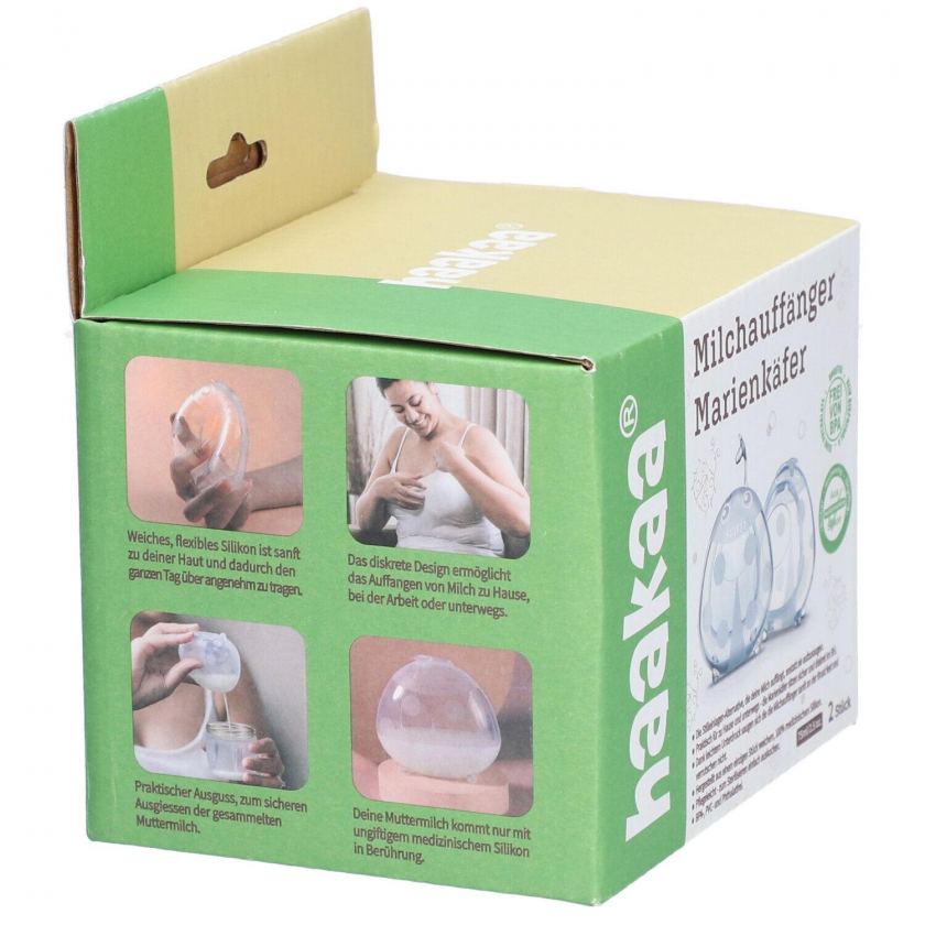 Набор из 2 силиконовых молокосборников Haakaa для кормящих матерей. Устройство в виде божьей коровки незаметно крепится в бюстгальтере, собирает вытекающее молоко и может использоваться для мягкого сцеживания. Объем 75 мл каждый, изготовлены из безопасного пищевого силикона.