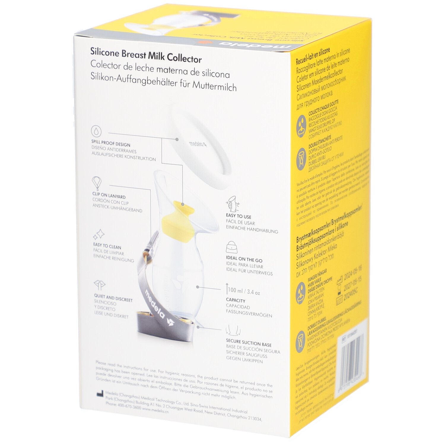 Силиконовый контейнер для сбора грудного молока Medela с двойной защитой от протекания, съемным ремешком и присоской. Вмещает до 100 мл, изготовлен из безопасного пищевого силикона, удобен в использовании и чистке.