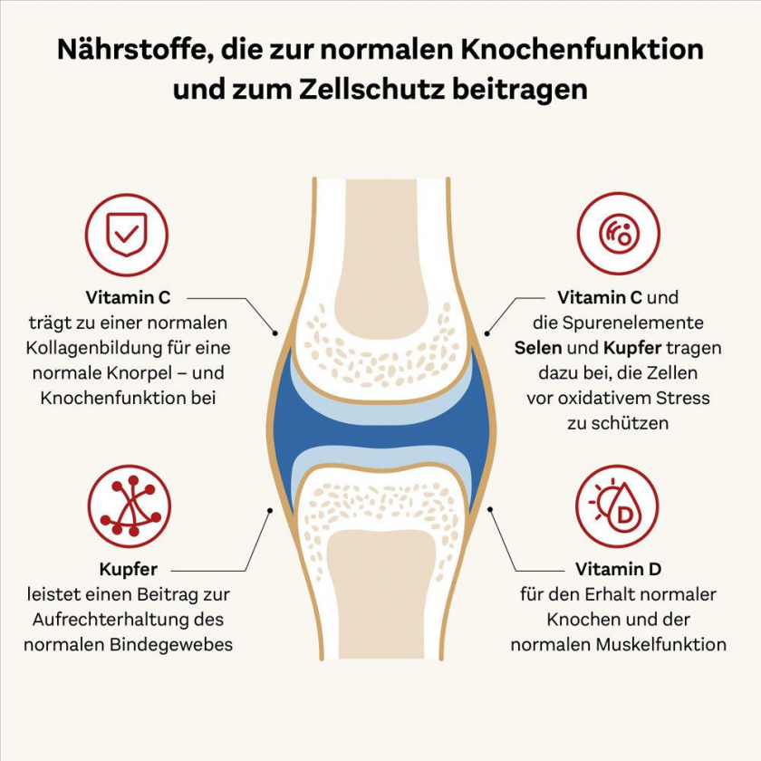 Doppelherz system KOLLAGEN 11.000 PLUS - пищевая добавка для поддержки здоровья суставов и костей. Содержит 11 г гидролизата коллагена, 100 мг хондроитинсульфата, витамины C, D, селен и медь. Упаковка: 30 питьевых флаконов по 25 мл с вкусом лесных ягод. Способствует нормальному образованию коллагена и функционированию хрящей и костей.