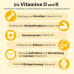 Витаминная добавка D3+K2 в форме масляных капель для всей семьи. Содержит 800 МЕ витамина D3 и 20 мкг витамина K2 (all-trans MK-7) в одном тропфене. Способствует поддержанию здоровья костей, зубов, мышц, иммунной системы и нормальной клеточной функции. Произведено в Германии из европейских ингредиентов фармакопейного качества. 640 порций во флаконе.