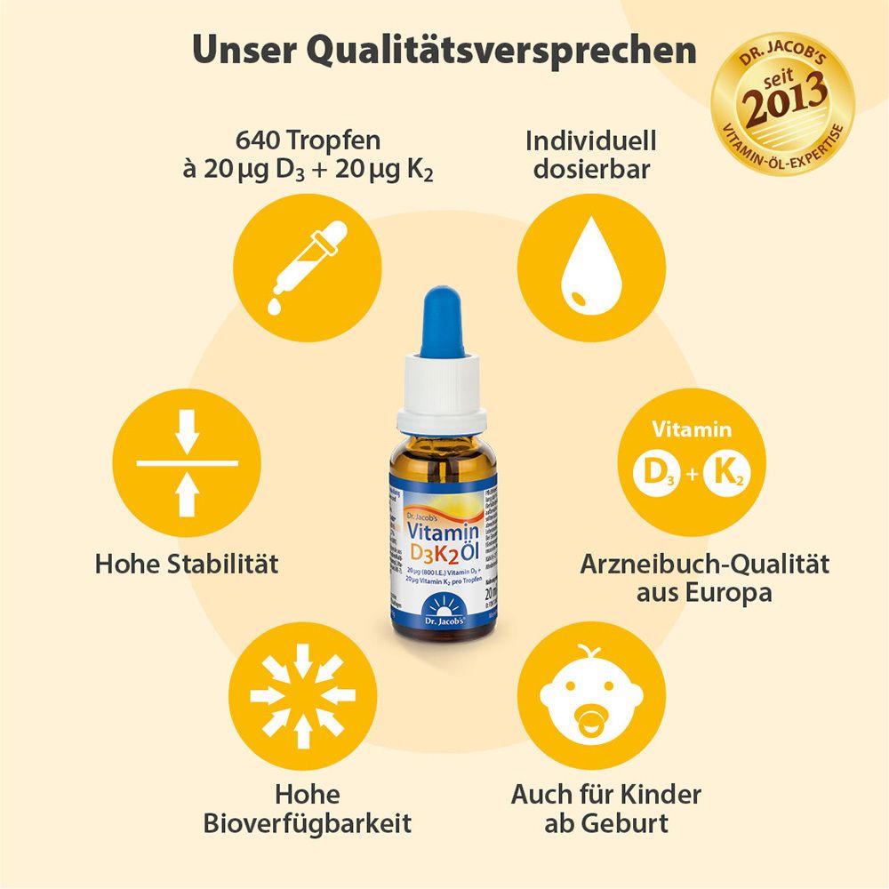 Dr. Jacob's Vitamin D3K2 Öl 800 IE/20 mcg D3+K2 640 Tropfen