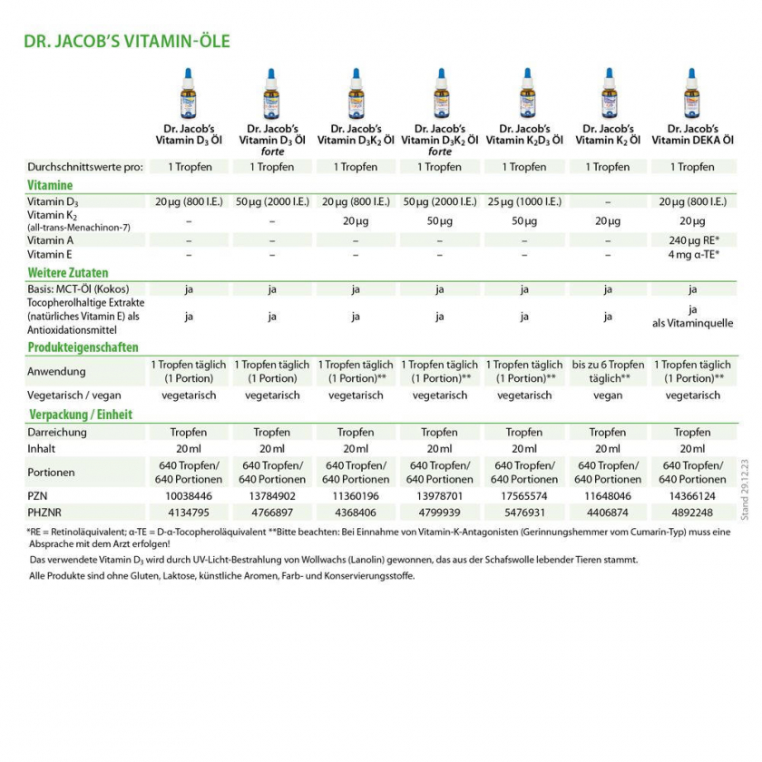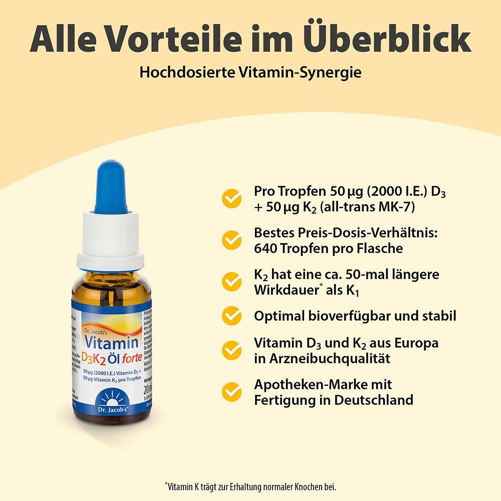 Dr. Jacob's Vitamin D3K2 Öl forte 2000 IE/50 mcg D3+K2 hochdosiert 640 Tropfen