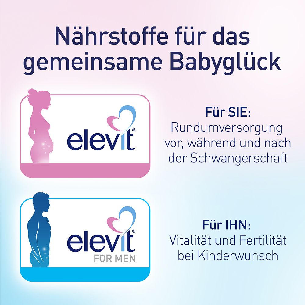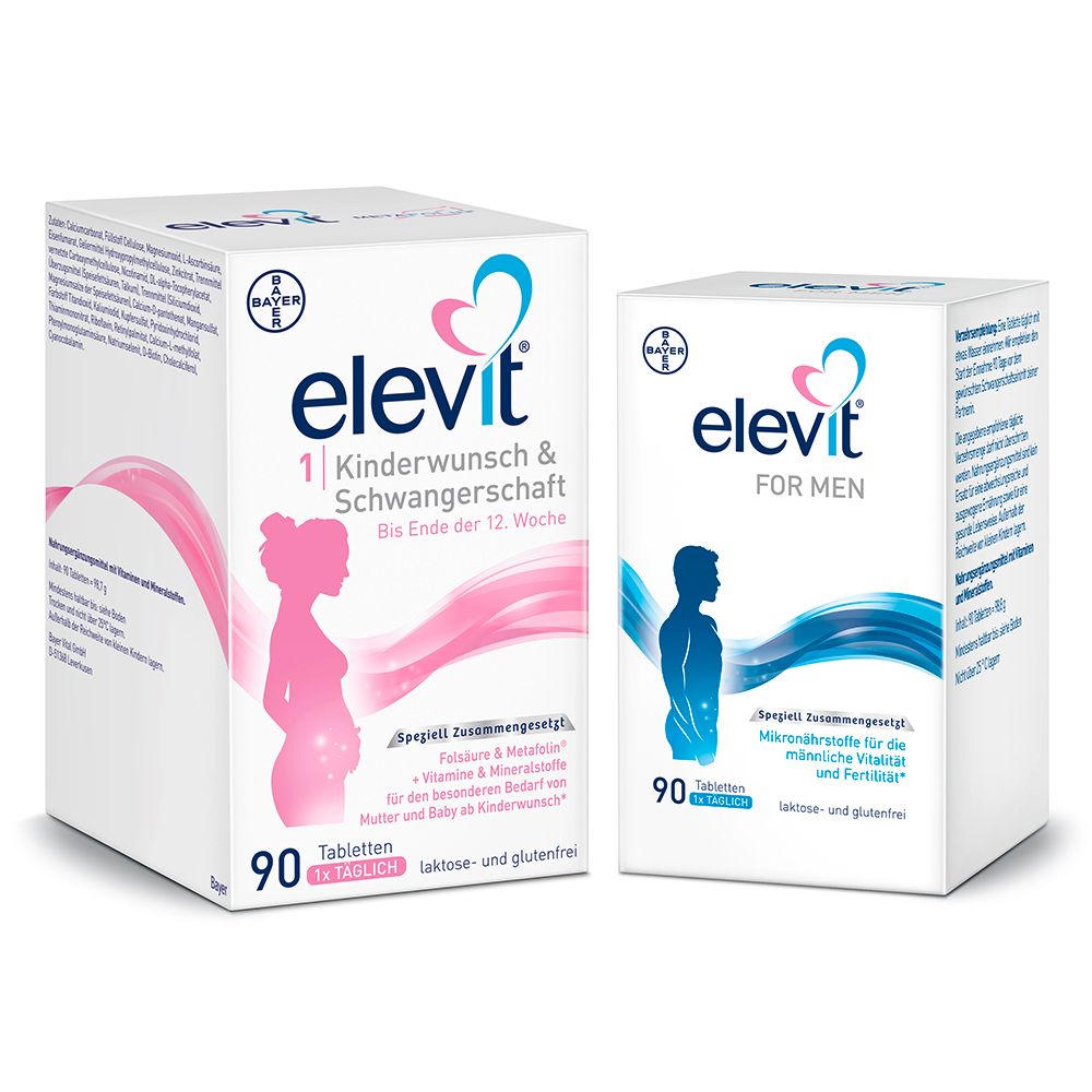 Elevit® Kinderwunsch-Set - комплекс витаминов и минералов для пар, планирующих беременность. Включает Elevit® 1 для женщин (поддержка с момента планирования до 12 недели беременности) и Elevit® FOR MEN для мужчин (улучшение качества спермы и мужской фертильности). Содержит фолат, цинк, селен, железо и другие важные витамины и минералы.