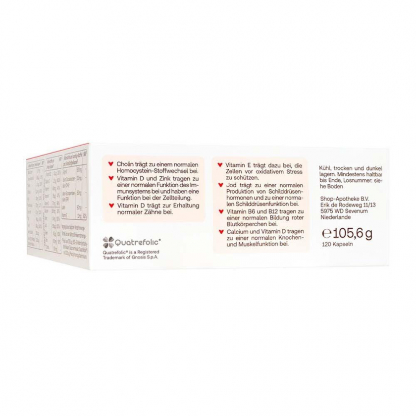 Витаминно-минеральный комплекс для кормящих матерей с фолатом, витаминами группы B, витаминами C, D, E, K, кальцием, железом, селеном, йодом, цинком, магнием, холином, DHA и EPA. Содержит активную форму фолата Quatrefolic® и растительное масло водорослей как источник омега-3 кислот. Поддерживает иммунитет, костную систему и защищает клетки от окислительного стресса.