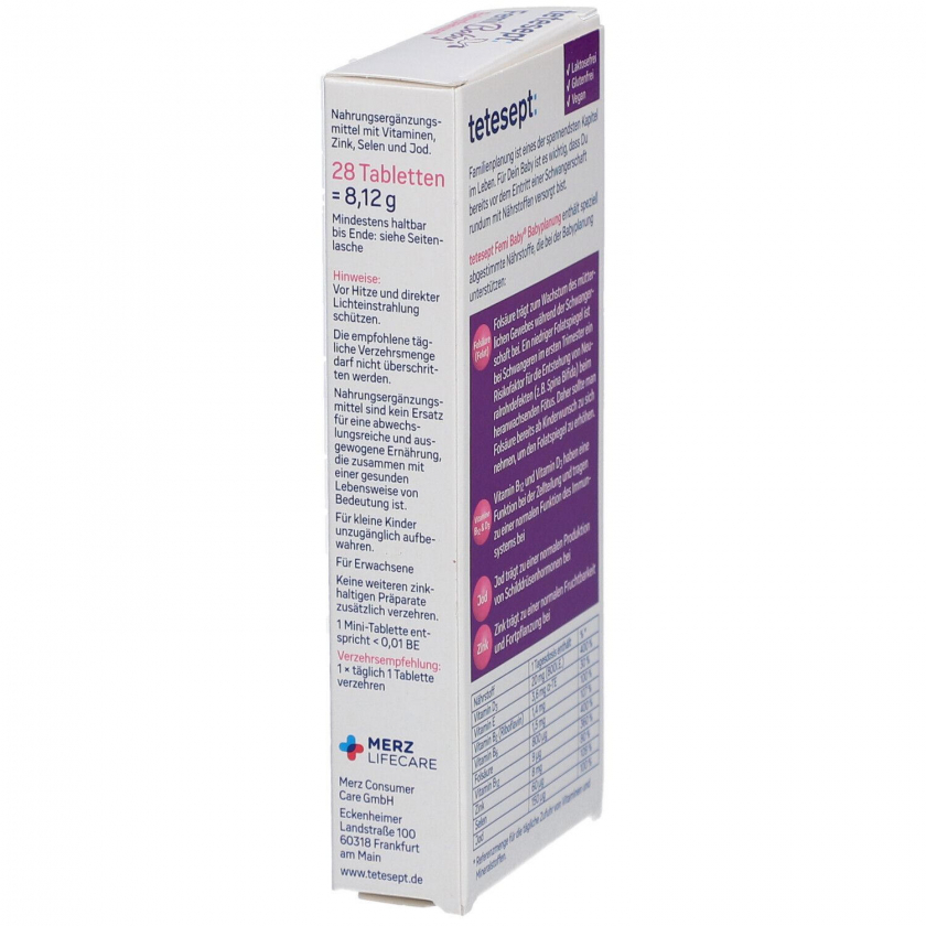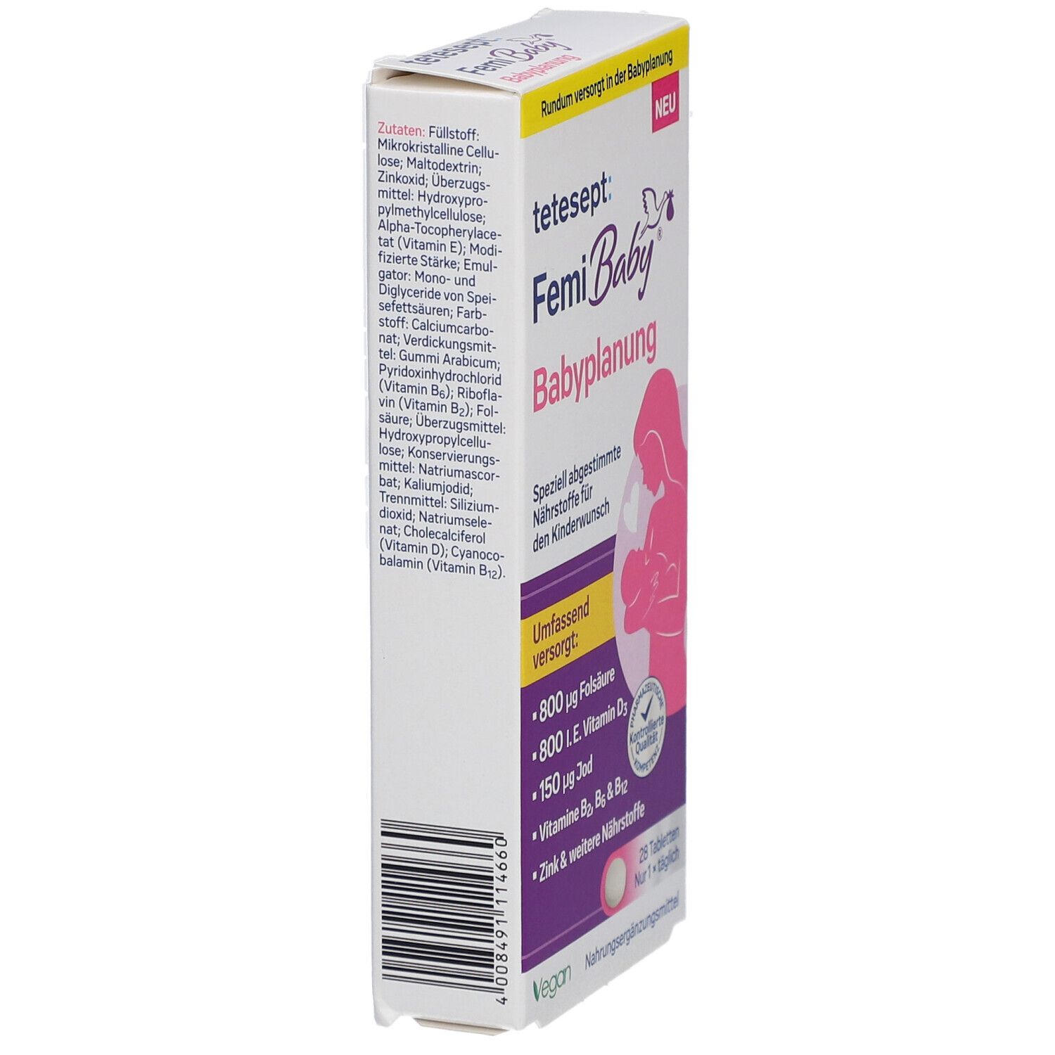 Tetesept Femi Baby Babyplanung - пищевая добавка с фолиевой кислотой, йодом и витаминами для поддержки женского здоровья при планировании беременности. Содержит специально подобранную комбинацию питательных веществ, способствующих нормальной фертильности и репродукции.