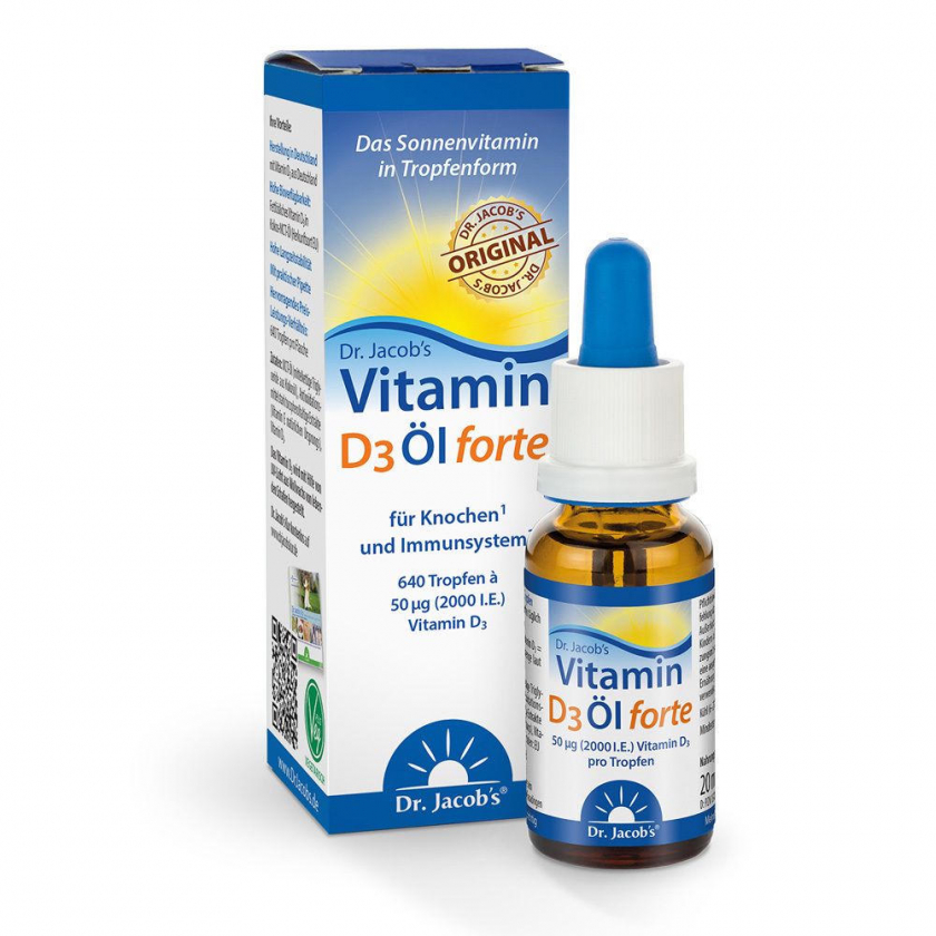 Dr. Jacob's Vitamin D3 Öl forte 2000 IE D3 hochdosiert 640 Tropfen vegetarisch