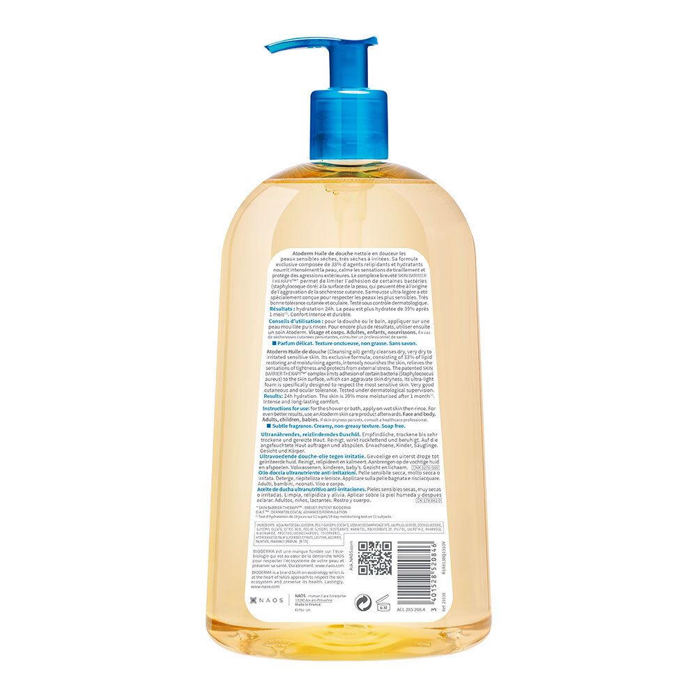 BIODERMA Atoderm Huile de douche - восстанавливающее масло для душа для очень сухой, склонной к нейродермиту и чувствительной кожи. Обеспечивает 24-часовое увлажнение, интенсивно питает, снимает раздражения, восстанавливает липиды и успокаивает кожу. Подходит для лица и тела всей семьи (кроме недоношенных детей). Без мыла, нежирное, с легкой пеной и нежным ароматом.