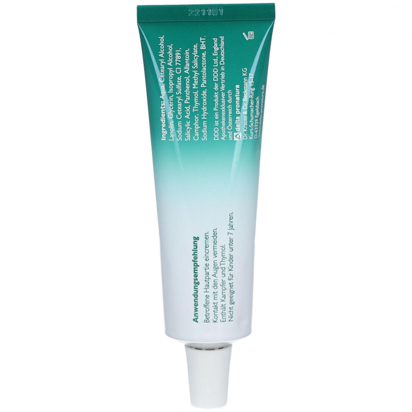 Состав: Вода, цетеариловый спирт, ланолин, глицерин, изопропиловый спирт, натрия цетеарил сульфат, диоксид титана (CI 77891), салициловая кислота, пантенол, метилсалицилат, аллантоин, камфора, тимол, гидроксид натрия